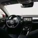 Interiér je po stránke dizajnu zvládnutý dobre. Vytknúť nemôžeme nič ani ergonomickej stránke, keďže je tu minimum ovládačov a všetky sú intuitívne. Osobne mi prekáža modrý dekoračný akcent, ktorý pôsobí ako zabudnutá ochranná fólia. Infotainment má jednoduchú grafiku a ovládanie je pomerne prehľadné, nechýba ani navigácia.