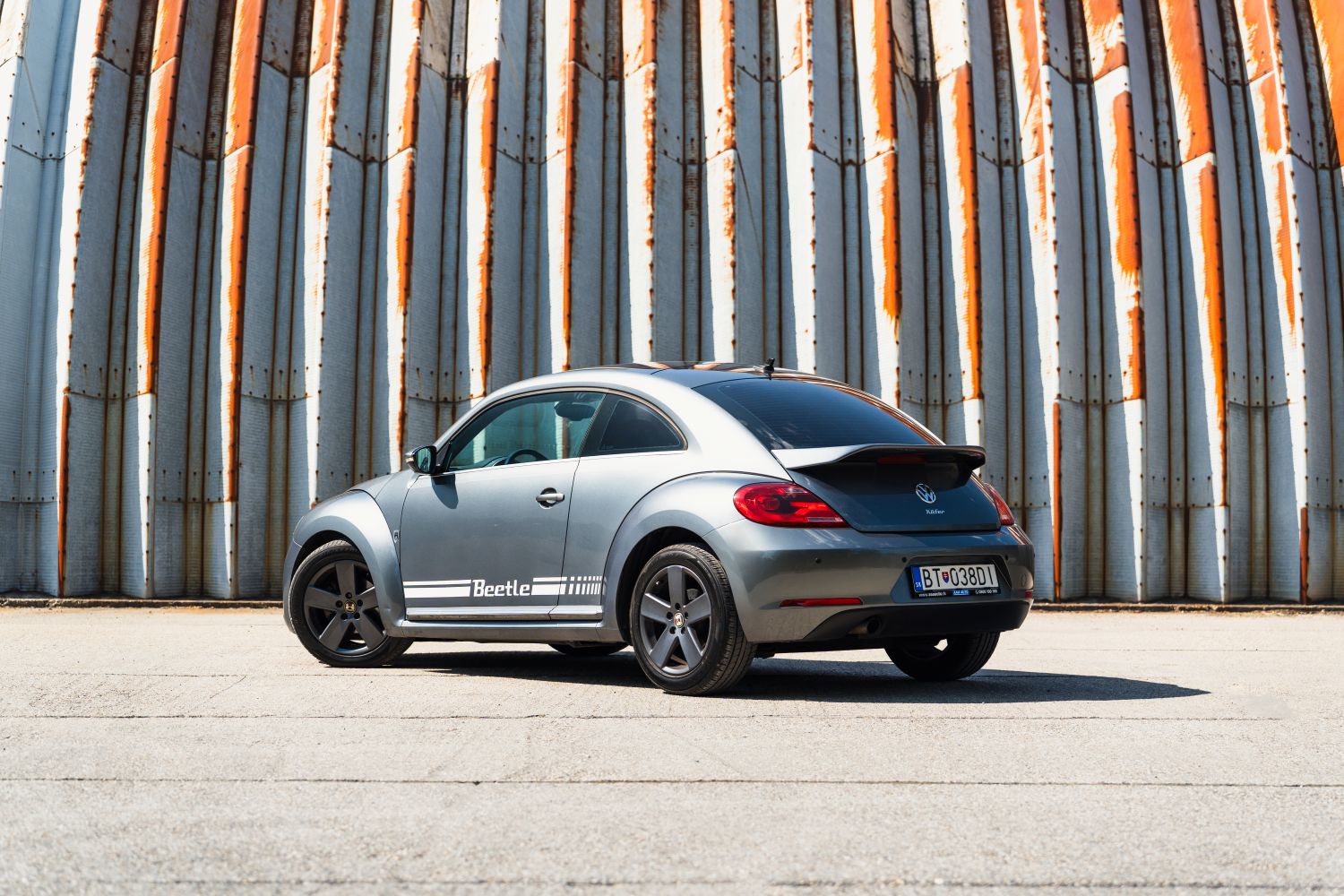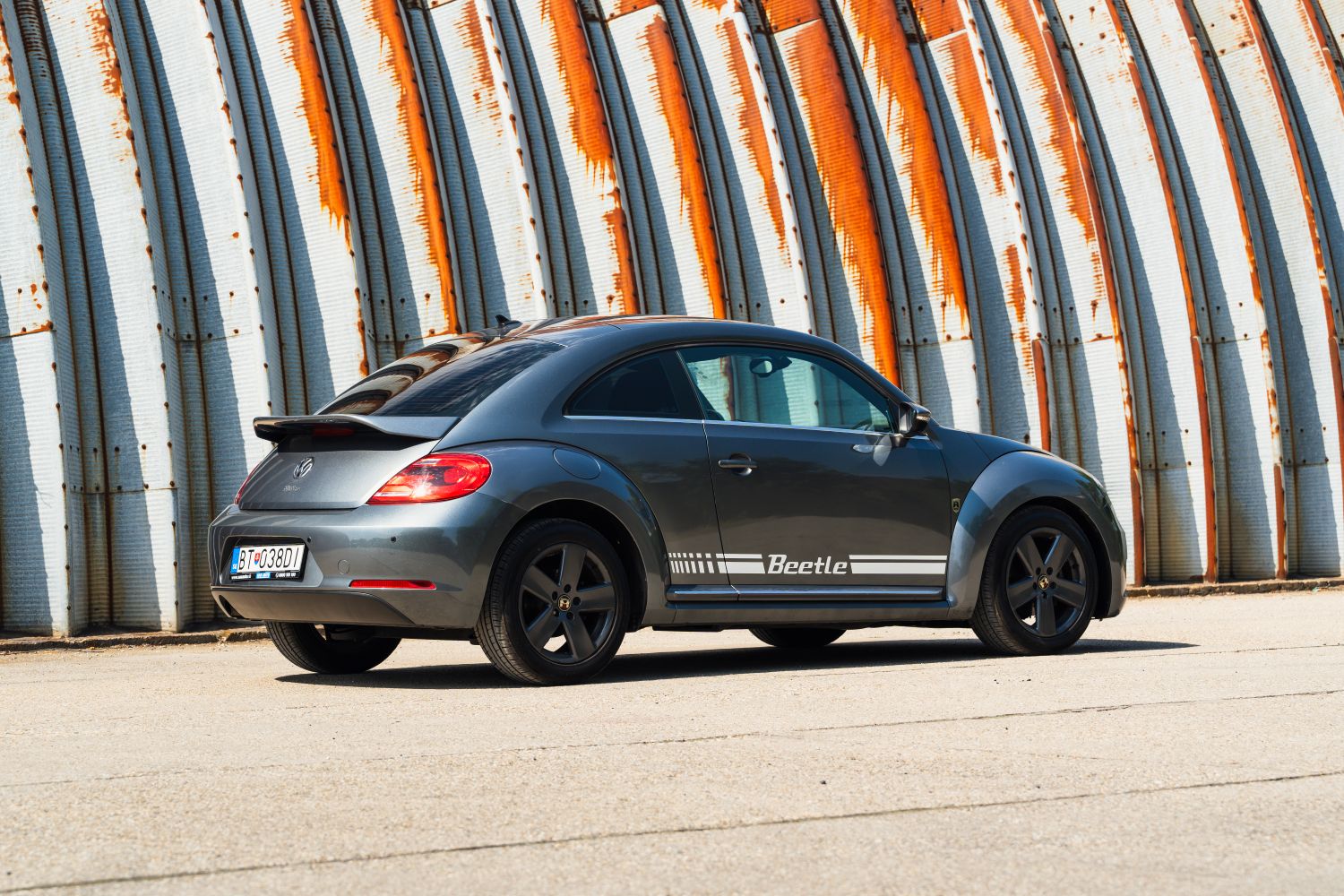 Čo sa týka vecí, na ktoré si treba v prípade exteriéru dať pozor, sú drobné poškodenia od kamienkov, no predovšetkým v prípade bezrámových okien skontrolujte, či poriadne fungujú a dobre tesnia. Keby sme pri zadnej časti stáli v roku 1938, tak by sme komentovali vzduchom chladený agregát a zadný náhon. Tieto súčasti sa nám však v najnovšej generácii presunuli pod prednú kapotu a na prednú nápravu a v zadnej časti nám ostalo vozidlo typu liftback, ktorý odkrýva objem batožinového priestoru na úrovni 310 litrov. Volkswagen Beetle má rázvor náprav na úrovni 2,5 m a celková dĺžka je 4,2 m so šírkou 1,8 m a výškou 1,4 m.
