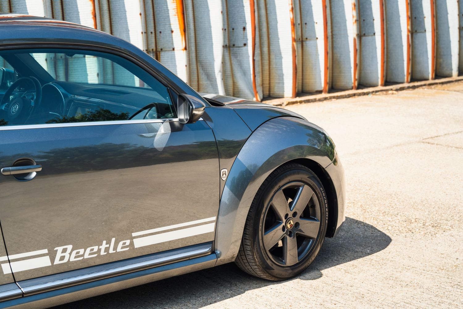 Čo sa týka vecí, na ktoré si treba v prípade exteriéru dať pozor, sú drobné poškodenia od kamienkov, no predovšetkým v prípade bezrámových okien skontrolujte, či poriadne fungujú a dobre tesnia. Keby sme pri zadnej časti stáli v roku 1938, tak by sme komentovali vzduchom chladený agregát a zadný náhon. Tieto súčasti sa nám však v najnovšej generácii presunuli pod prednú kapotu a na prednú nápravu a v zadnej časti nám ostalo vozidlo typu liftback, ktorý odkrýva objem batožinového priestoru na úrovni 310 litrov. Volkswagen Beetle má rázvor náprav na úrovni 2,5 m a celková dĺžka je 4,2 m so šírkou 1,8 m a výškou 1,4 m.