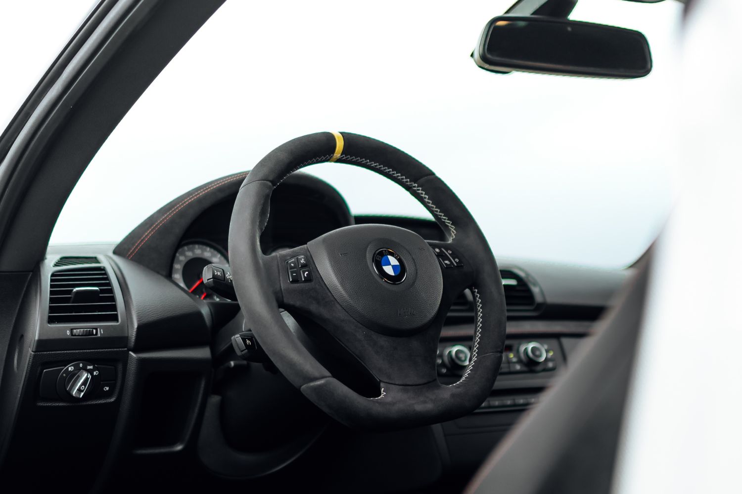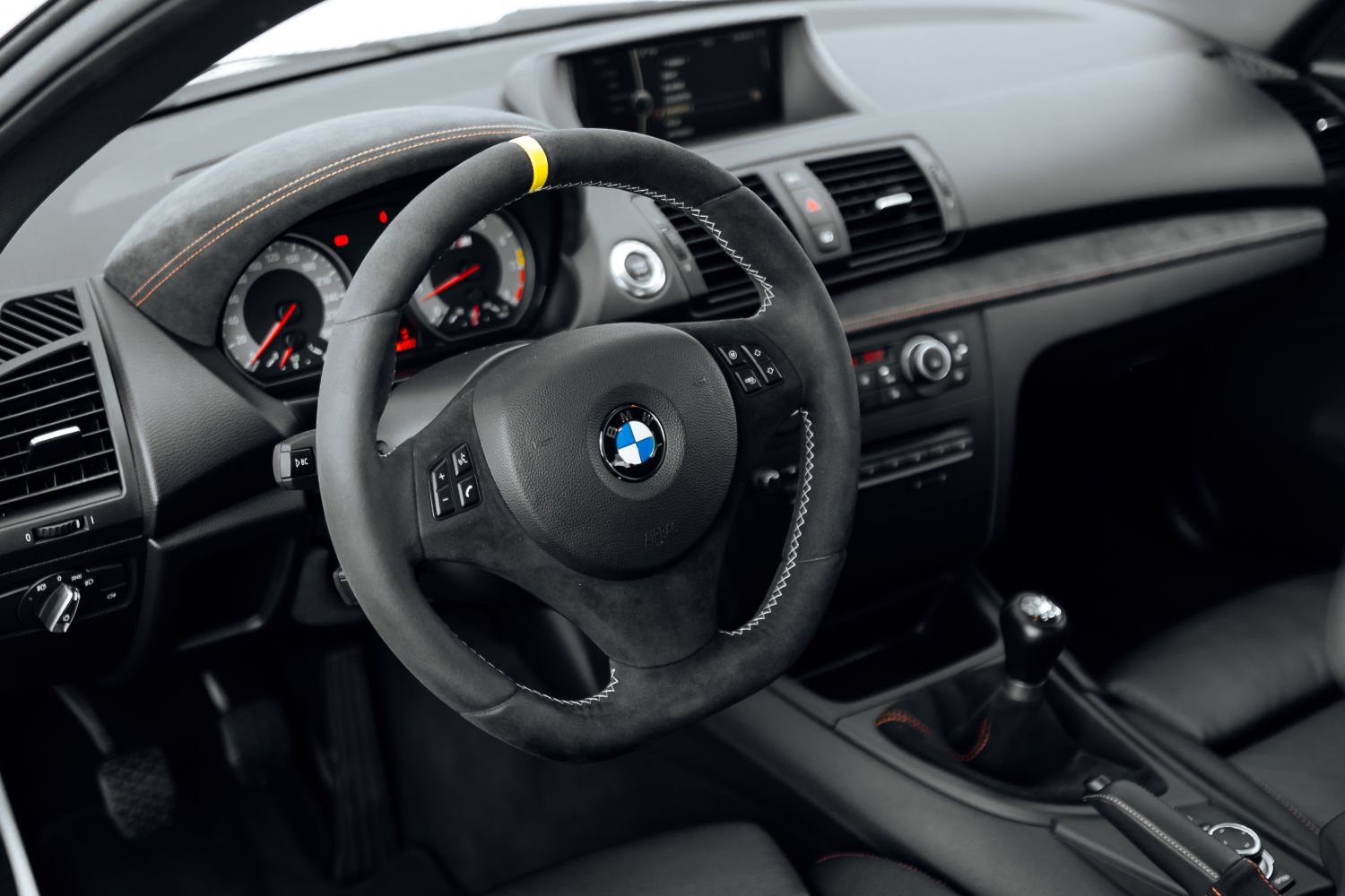 Predné sedadlá BMW 1 M poskytujú výrazné bočné vedenie a držia telo stabilne aj pri dynamickej jazde v zákrutách. Použitá kombinácia kože a Alcantary doplnená kontrastným oranžovým prešívaním vytvára prijemný športový dojem. Alcantara sa nachádza aj na častiach prístrojovej dosky, dverových výplniach a volante.