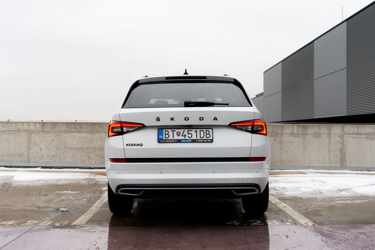 Modelový rok 2021 priniesol Kodiaqu už vyladený dizajnový jazyk, ktorý dodnes pôsobí moderne. Testovaný kus v bielej metalíze a so športovo ladenými prvkami vo verzii Sportline má stále svieži vzhľad. LED svetlomety, výrazná maska a dynamické proporcie robia zo Škody Kodiaq SUV, ktoré si drží hodnotu aj esteticky. Na karosérii je potrebné pri jazdených kusoch vždy sledovať rovnomernosť odtieňa, medzery medzi dielmi a prípadné stopy po opravách. V tomto prípade pôsobí vonkajší stav podľa fotografií a popisu v inzercii konzistentne so stavom jazdeného firemného vozidla.