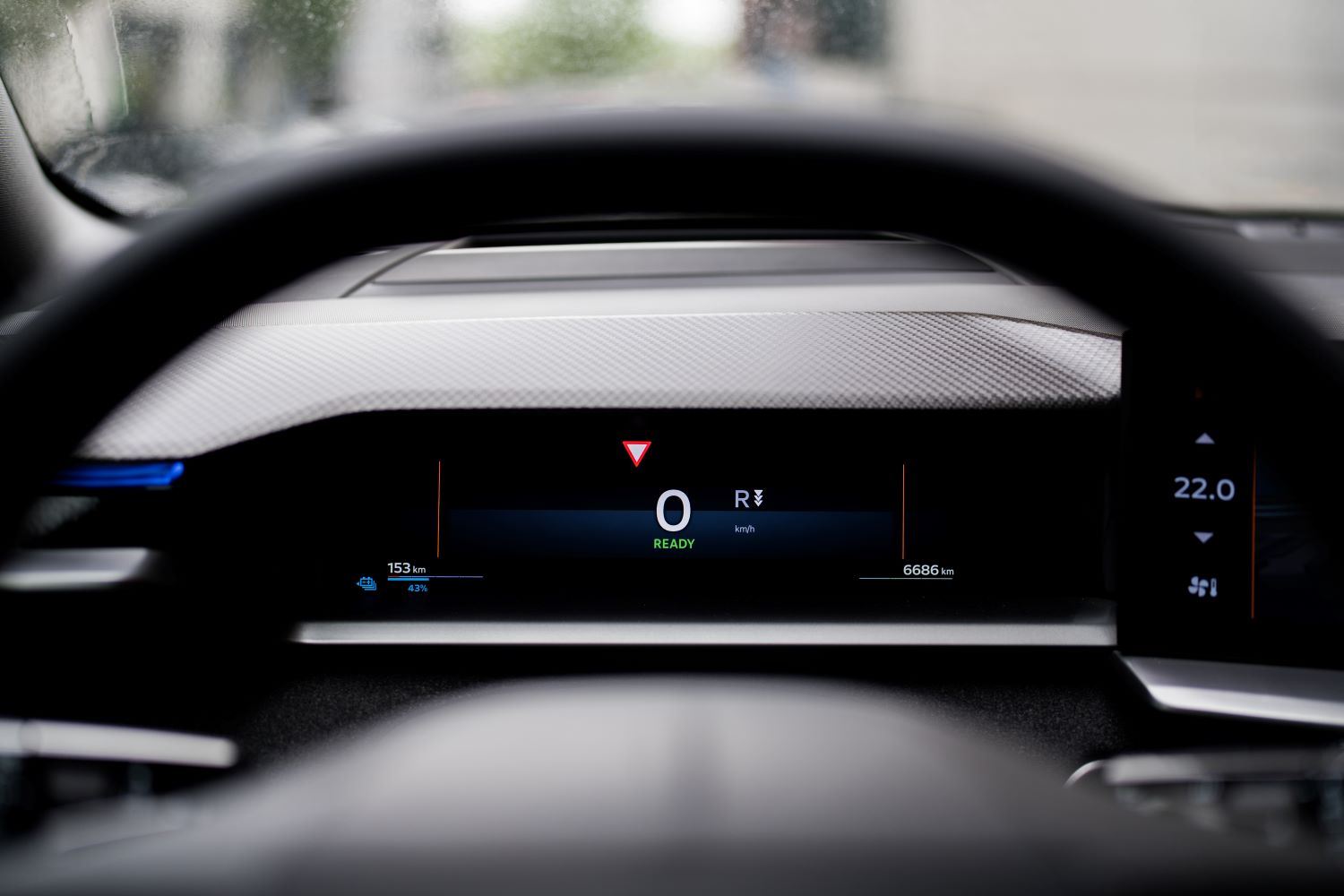 V čom je prístrojový štít strohý, to plnohodnotne nahrádza head-up displej s obrovskou premietacou plochou, na ktorej zobrazuje aj mapu navigácie. V strede vás čaká 16-palcový displej, ktorý na prvý pohľad pôsobí oveľa menšie. Je totiž netradične úzky, vďaka čomu lepšie pasuje do palubovky. Ponúka prehľadné menu, rýchle reakcie a nechýba podpora bezdrôtovej konektivity. Navyše hlasový asistent funguje s podporou Chat GPT. Zamrzeli nás len občasné glitche, kedy sa z ničoho nič odpojil CarPlay, alebo po krátkom vystúpení a nastúpení sa vôbec nechcel zapnúť.