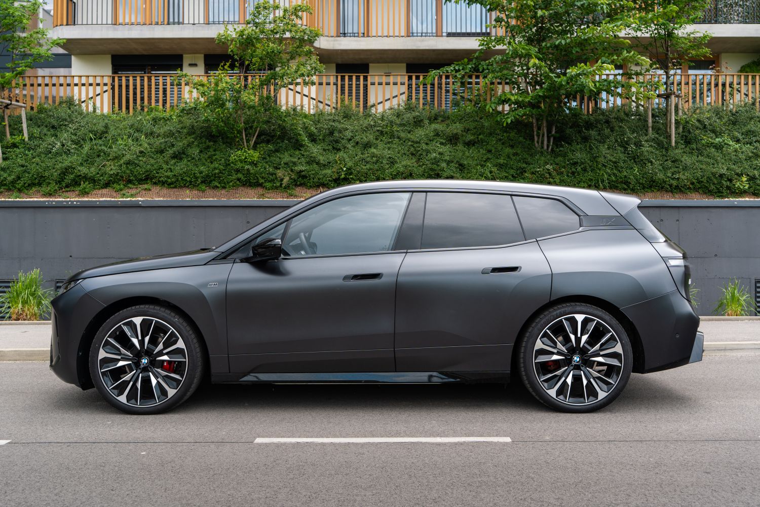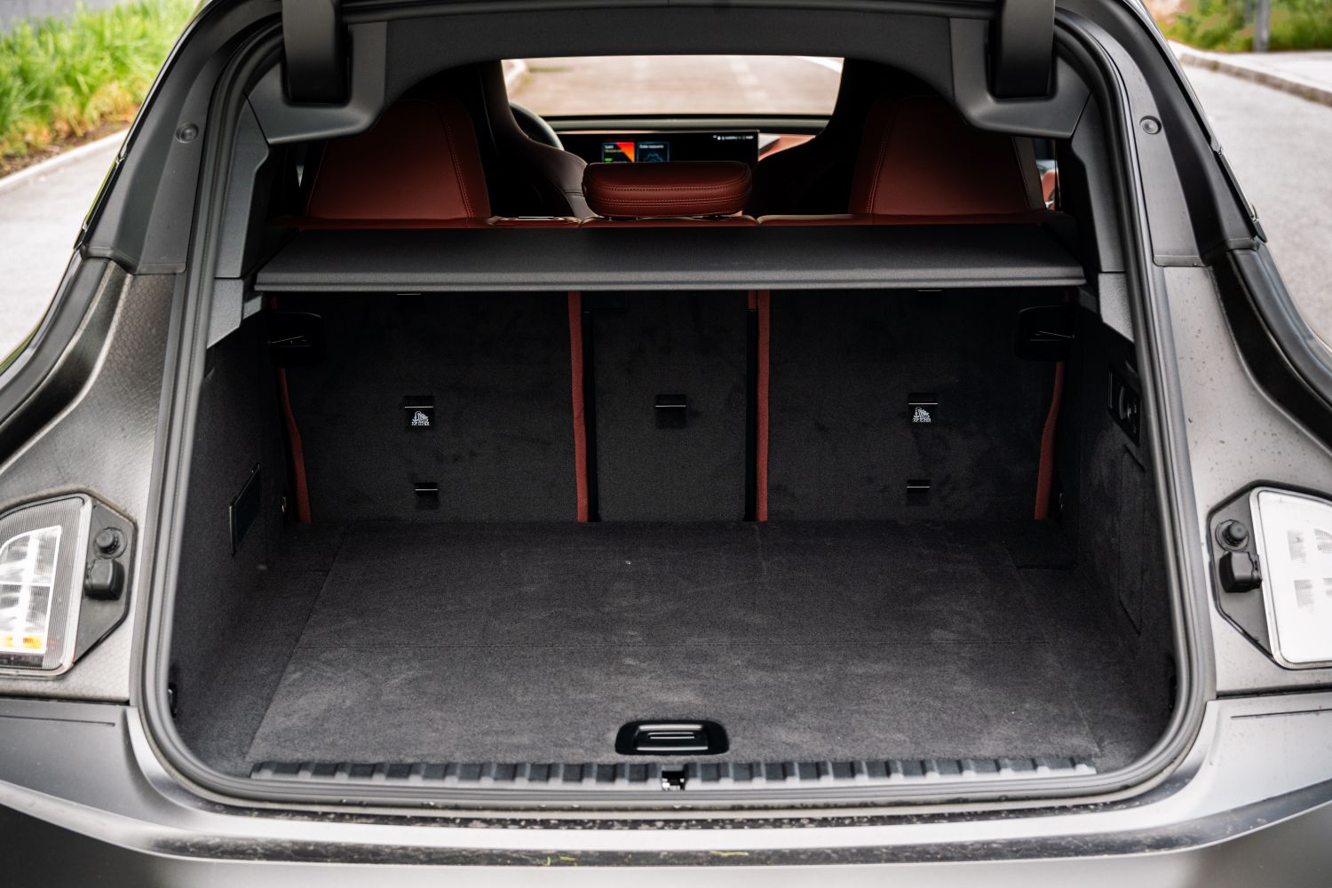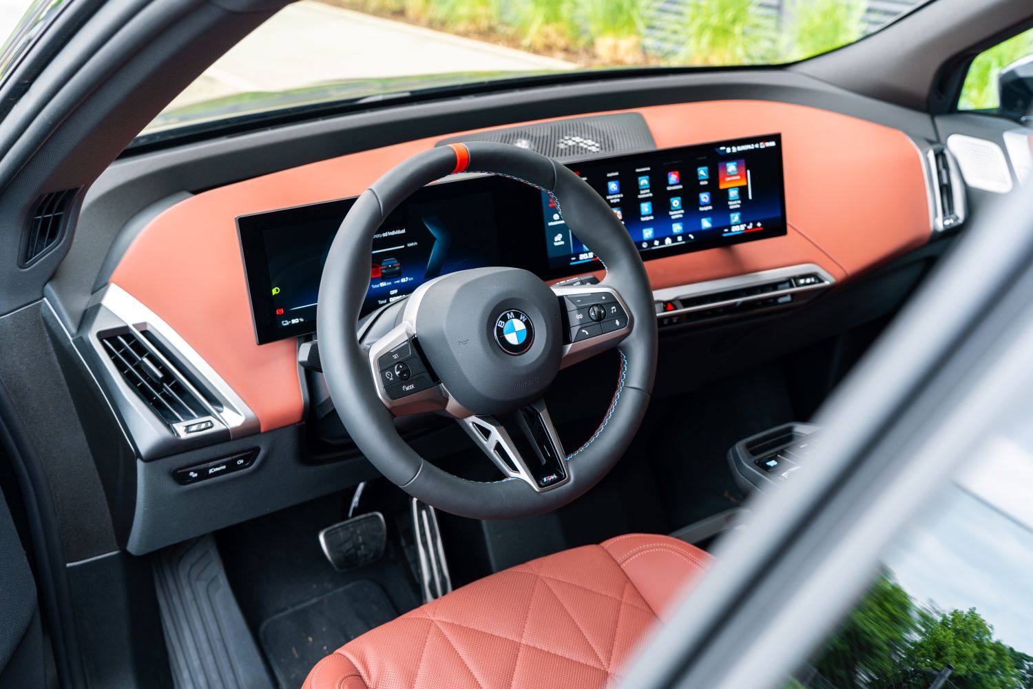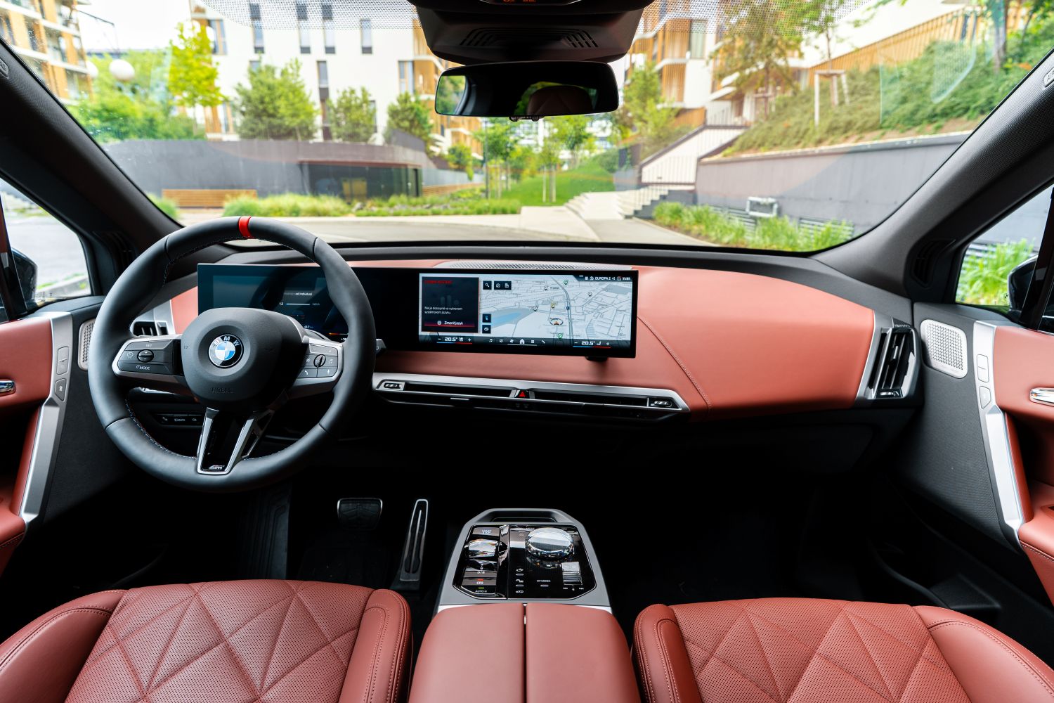 Interiér BMW iX prináša kombináciu luxusu a športového dizajnu. Nové multifunkčné M sedadlá z perforovaného mikrovlákna/Sensatec alebo voliteľne z prírodného koženého čalúnenia poskytujú lepšiu bočnú oporu a výrazný vzhľad. Nečakajte tu žiadne nepohodlné škrupiny, napriek výkonu ponúka aj verzia M70 komfort na vysokej úrovni. Súčasťou balíka je aj M kožený volant, dvojfarebná prístrojová doska s logom M, ozdobné lišty Dark Silver, antracitové čalúnenie stropu, M pedále a stredová konzola s čiernou povrchovou úpravou s vysokým leskom. M je jednoducho takmer samostatná značka a pozor, toto nie je dizajnový balíček M Line, ale plnohodnotná verzia M. Čakali by ste, že priestor pre batožinu s objemom 500 litrov je pri päťmetrovom aute málo? Netreba sa báť, zbalíte sem kočík aj s batožinou.