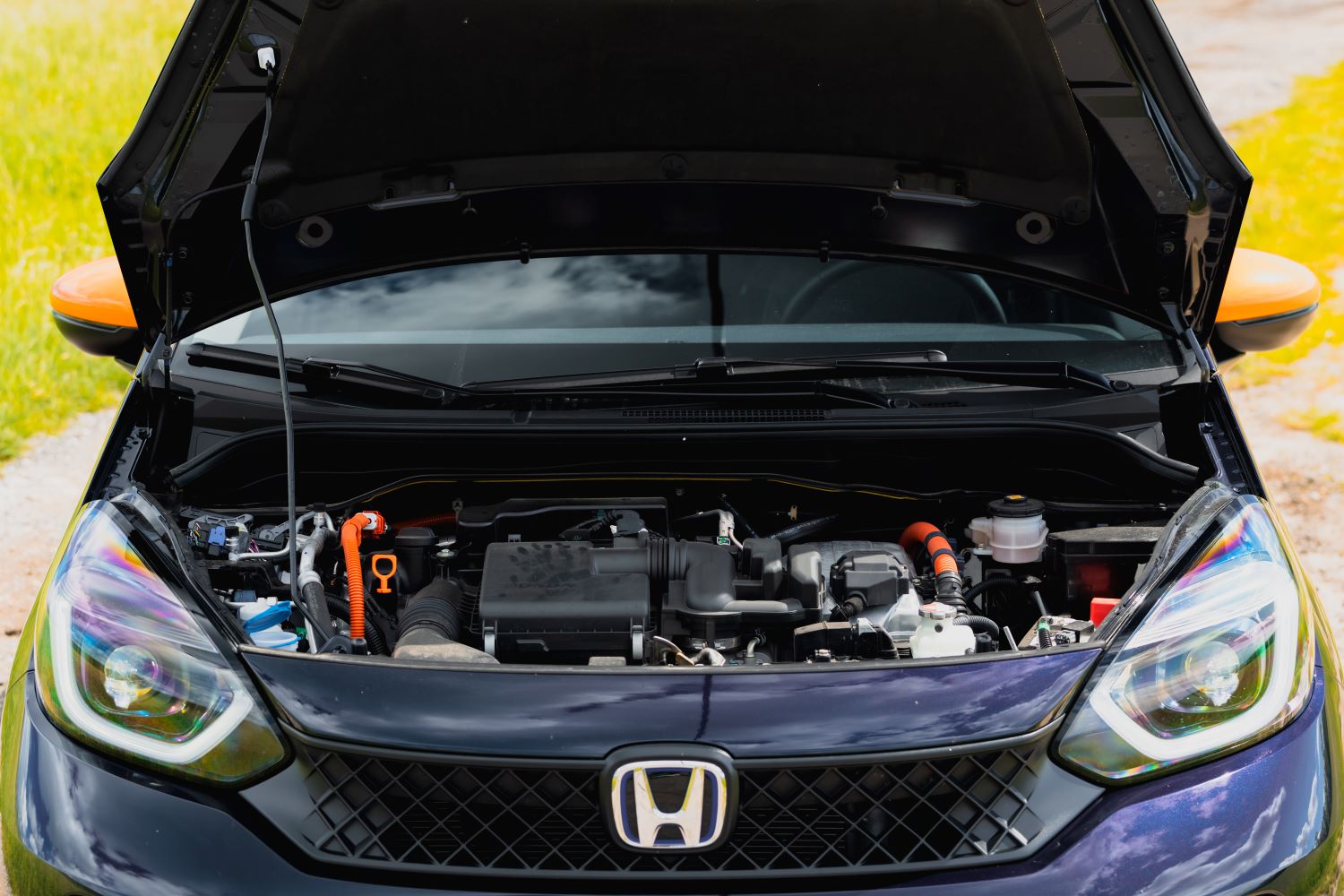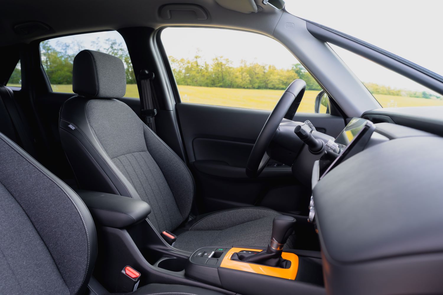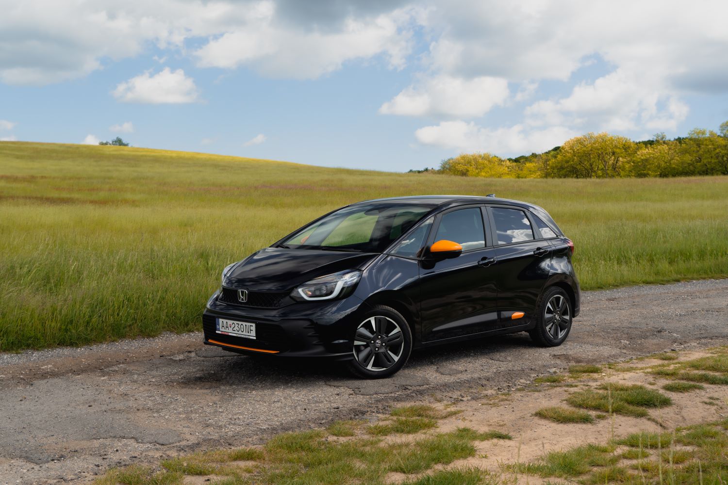 Testovaný kus prišiel v zaujímavej tmavomodrej metalíze s oranžovými doplnkami. Tak trochu netradičná kombinácia, ktorá však naživo funguje. Nie je výstredná, no dokáže Jazz opticky „rozbiť“ a odlíšiť od bežného šedého priemeru. Pridané kryty prahov, lišty a dizajnové doplnky majú praktickú aj estetickú funkciu. Podľa Hondy ide o pokus o oživenie mestského stereotypu.