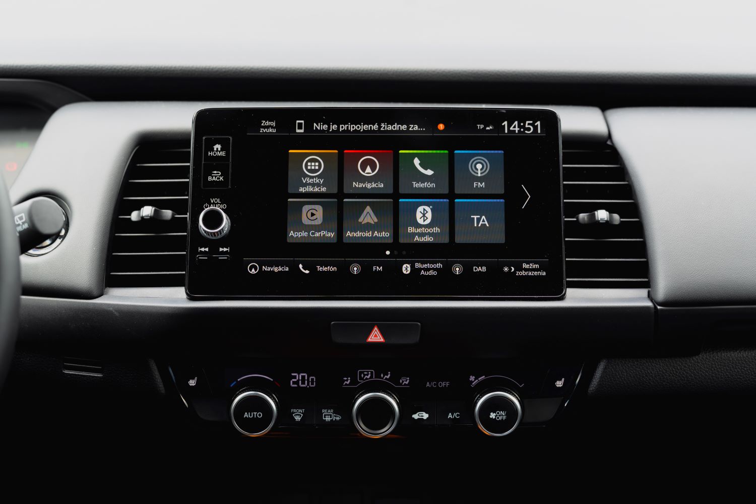 Po usadnutí prekvapí výborná pozícia za volantom a veľmi dobrý výhľad všetkými smermi. Honda síce zostala verná klasickej architektúre, ale ergonómia je presne taká, ako má byť. Displej systému Honda CONNECT 2 má rýchle reakcie. Podporuje Android Auto aj Apple CarPlay (bezdrôtovo), a nechýba klasický panel klimatizácie s otočnými ovládačmi. To ocení každý, kto neznáša dotykové menu na nastavenie teploty.