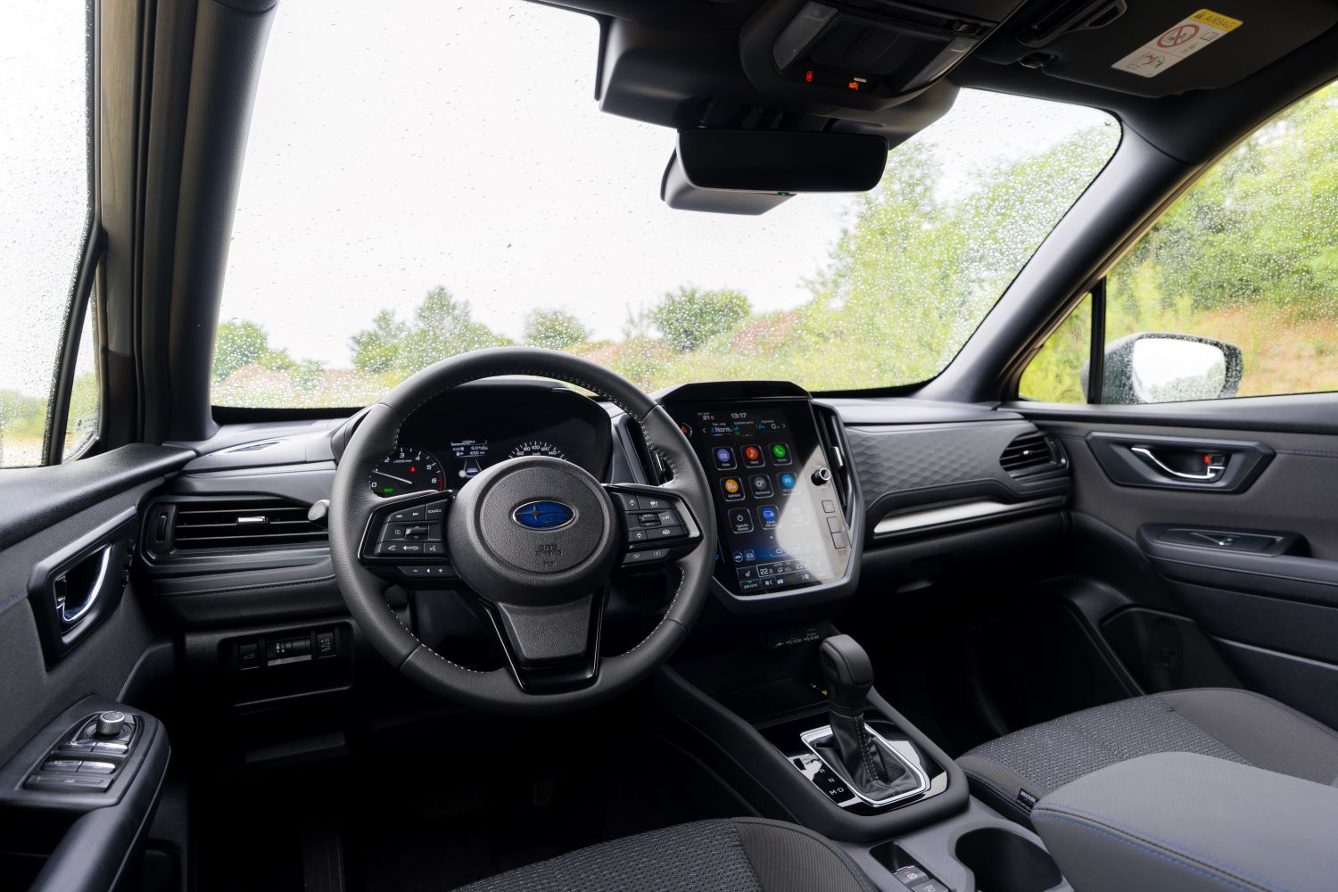 Pri pohľade dovnútra sa opäť musíme vrátiť k úvodu. Subaru to nerobí pre pekné produktové fotky a páčiky na sociálnych sieťach, ale pre ľudí. Preto je interiér na pohľad fádny, ale taktiež jednoduchý na používanie. Dominantným prvkom je 11,6″ dotykový stredový displej, ktorý má však mimoriadne prehľadné používateľské rozhranie. Je síce pomalší, ale ponúka bezdrôtovú konektivitu. V jeho tesnej blízkosti sa nachádzajú hardwarové ovládače teploty a taktiež hlasitosti. Tým pádom pekne vyvažuje ergonómiu ovládania, aj keď väčšinu funkcií klimatizácie musíte ovládať cez displej. Ale zvyšok interiéru je v dnešnom ponímaní také malé retro. Analógové budíky, LED výstrahy namiesto head-up displeju. Kvalitou spracovania sa však drží vysoko a aj keď použité materiály nie sú exotické, sú príjemné na dotyk.