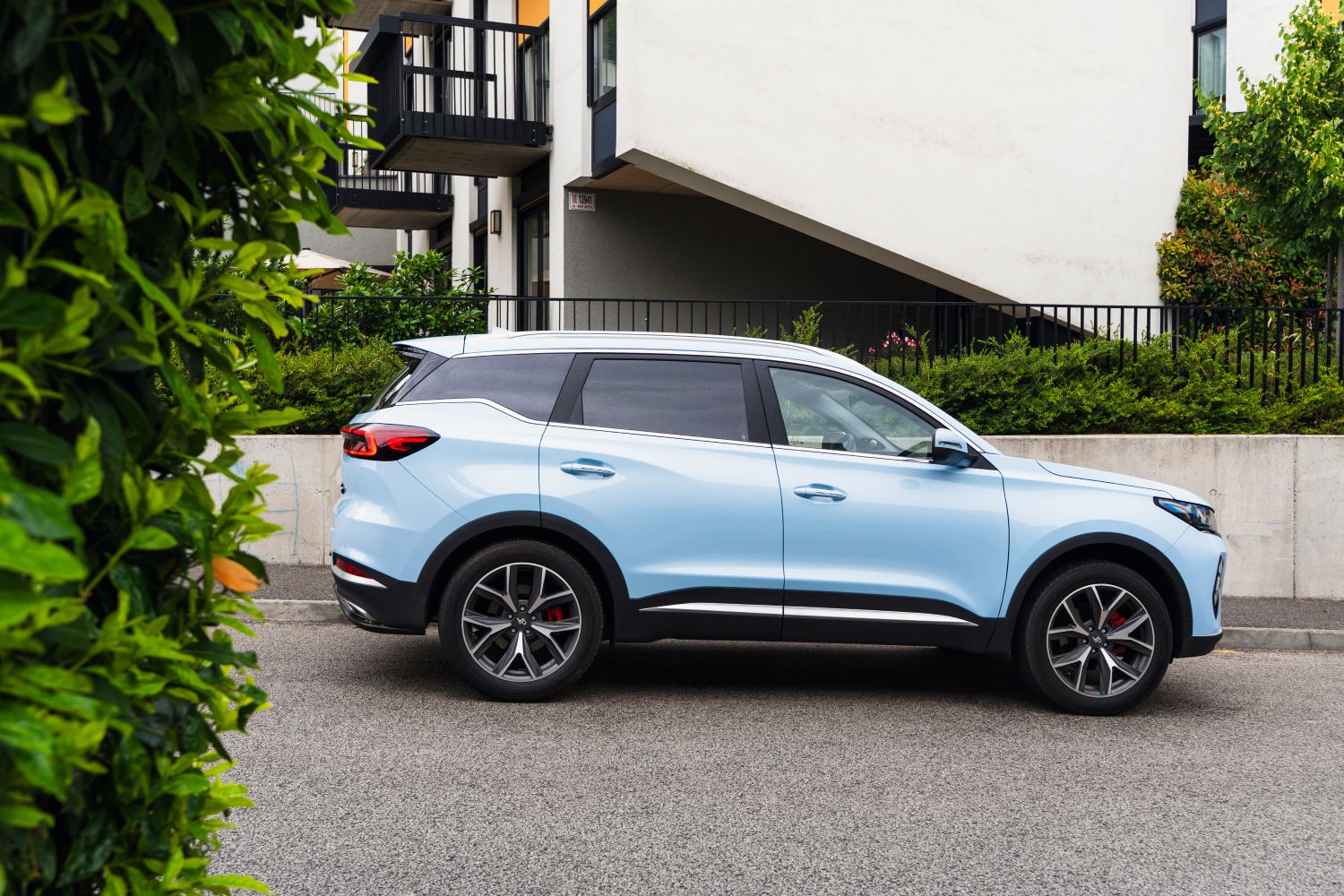 Áno, priemerne veľké SUV s dĺžkou 4,5 metra ponúka pre štvorčlennú rodinu bohatý priestor. Dokonca viete medzi podsedák a detskú sedačku v druhom rade sklopiť lakťovú opierku s držiakmi na fľaše/poháre, čo kvôli vnútornej šírke nebýva vždy zvykom. Chválime aj rovnú podlahu, čiže žiadny stredový tunel, ktorý by obmedzoval voľný priestor. Objem 680 litrov sa nám zdal príliš optimistický, čínske normy merania objemu sú pravdepodobne odlišné. Nenachádza sa tu ani 12-voltová elektrická zásuvka.
