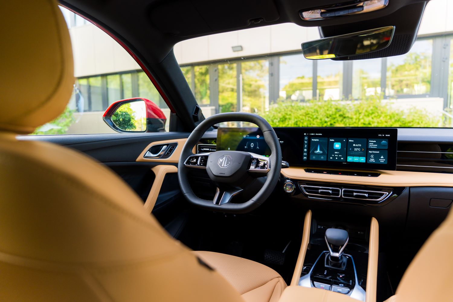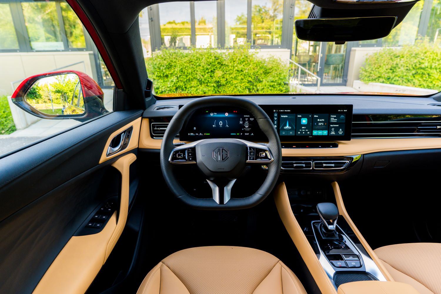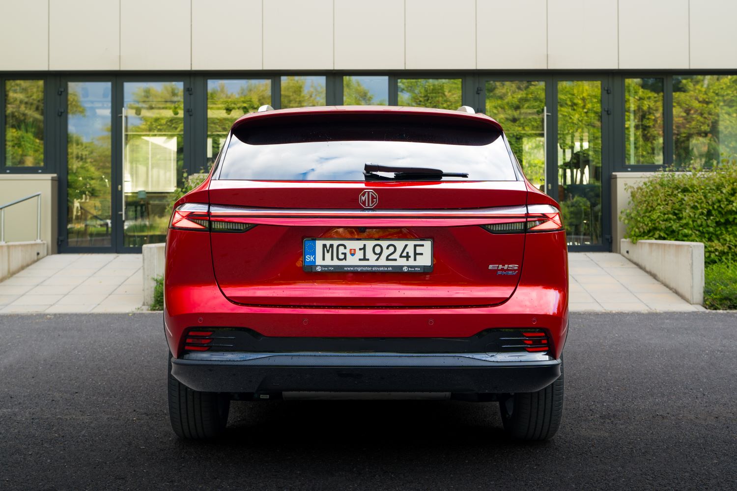 Iba v krátkosti k MG HS, ktoré sme už testovali v čisto spaľovacej verzii. Oproti predchodcovi auto natiahli rovno o 9 centimetrov. Základný objem kufra tak vzrástol zo 463 na 507 litrov, ale v prípade hybridu sa už musíte uspokojiť s 441 litrami. Interiér je taktiež rovnako hodnotne poňatý, čo znamená, že nové MG HS sa nepúšťalo do nejakej veľkej revolúcie a skôr sa snažilo napraviť chyby predchodcu. Ostali zachované na dotyk prívetivé materiály. Nové sú dva 12,3″ displeje aj s novým prehľadnejším systémom.