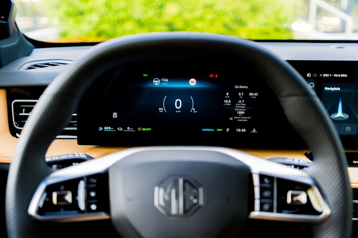 Ale poďme k tomu podstatnému. Pod kapotou sa nachádza dobre známa pohonná jednotka 1,5 TGI. Tá bola v prípade HS smädnejšia, než najbližšia konkurencia a preto veľmi vítame spojenie s hybridným pohonom. A MG sa vôbec nedržalo bokom. Do HS PHEV vložili 21,4 kWh batériu, ktorá postačí na maximálny dojazd 100 kilometrov. A veruže nám sa podarilo tento výsledok nie len napodobniť, ale aj o niekoľko pár kilometrov prekonať. Aj s pomocou výbornej spotreby 13,5 kWh na 100 km.