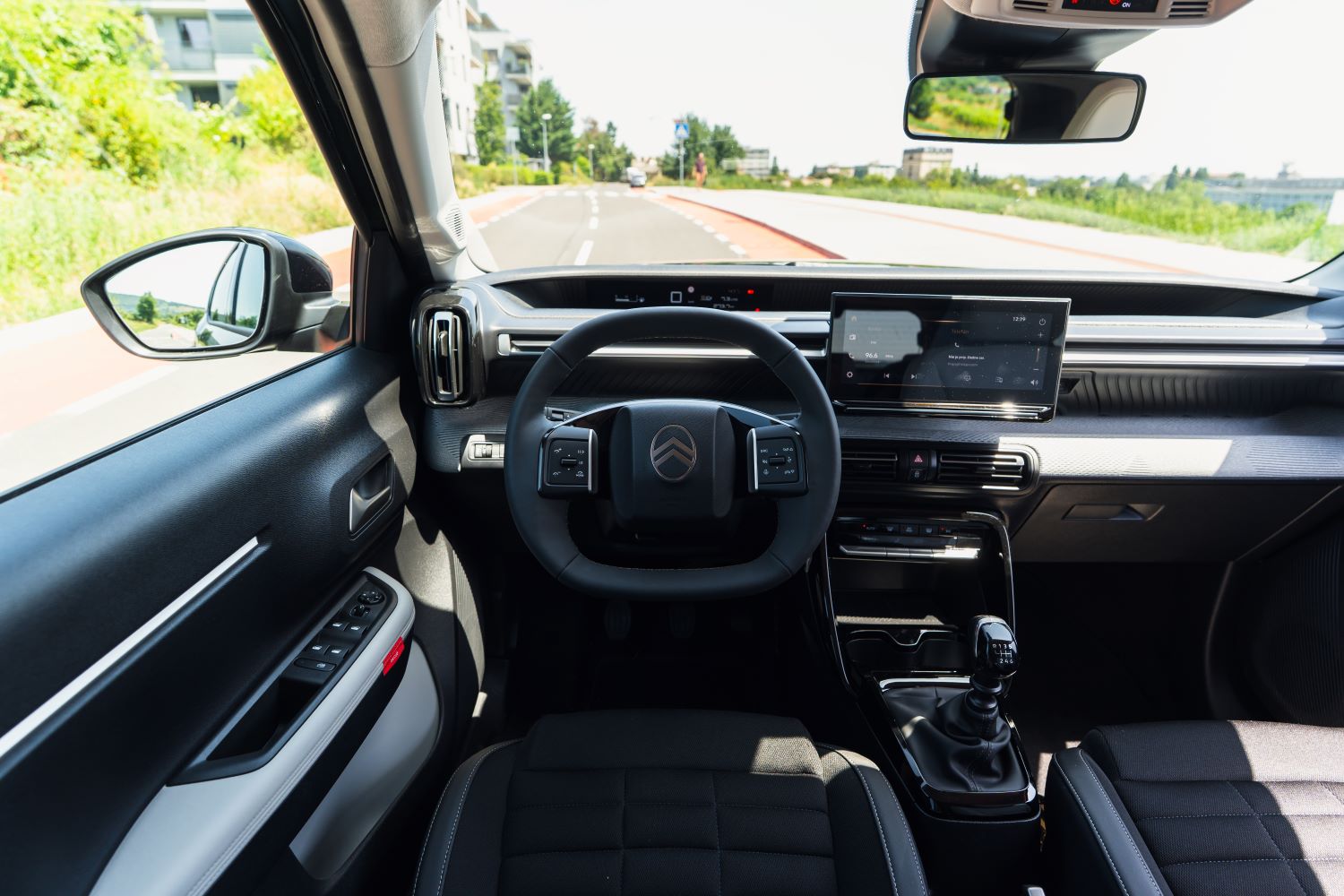 Po mild-hybride s dostatočným výkonom 145 koní sme vyskúšali základnú motorizáciu s výkonom 101 koní spojenú so šesťstupňovou manuálnou prevodovkou. Medzi prednými sedadlami sa v tejto verzii nachádza klasická ručná brzda, čo je dôvod, pre ktorý ani v najvyššej výbave Citroen neponúka lakťovú opierku so schránkou na uloženie vecí. Pri dlhších cestách, ktoré vozidlu nerobia problém, by sme lakťovú opierku určite privítali.