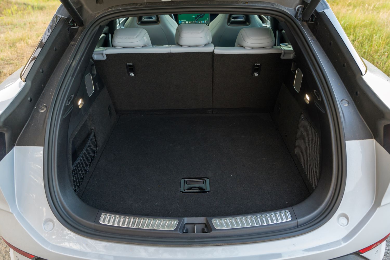 Sedáky sú dostatočne dlhé a šírka v oblasti lakťov vás tiež nijako neobmedzí. Dvere sa síce neotvárajú do pravého uhla, no s umiestnením detskej sedačky ani masívnej ISO-FIX základne s vajíčkom problém nebude. Aby sme však iba nechválili, musíme pomenovať aj pár negatív, ktoré sme neočakávali. Prvým sú svetlá, ktoré síce vyzerajú ako Matrix-LED, no táto funkcia im chýba. Samotná svietivosť je dobrá, no od takto technologický vyspelého auta sme očakávali niečo viac.