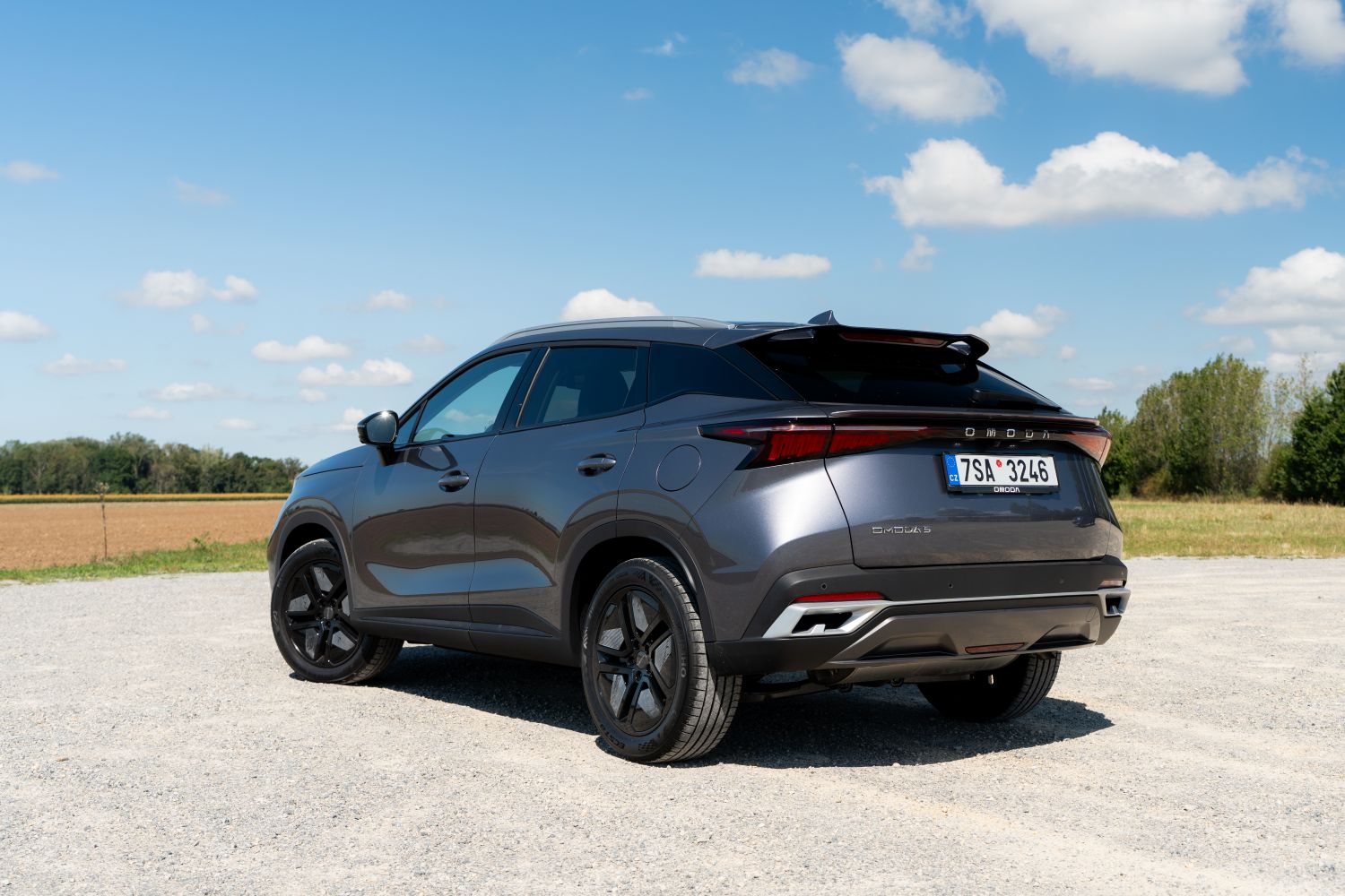 Ďalší odkaz na kórejskú konkurenciu nájdeme aj pri pohľade na kolesá, keďže vozidlo malo obuté pneumatiky kórejskej značky Kumho, konkrétne rozmer 215/55 R18. Omoda 5 nezaprie dizajnovú inšpiráciu japonskými vozidlami. Predná časť pripomína trochu aktuálny Nissan Qashqai, pri pohľade zozadu nám na um chodili predovšetkým SUV značky Lexus.