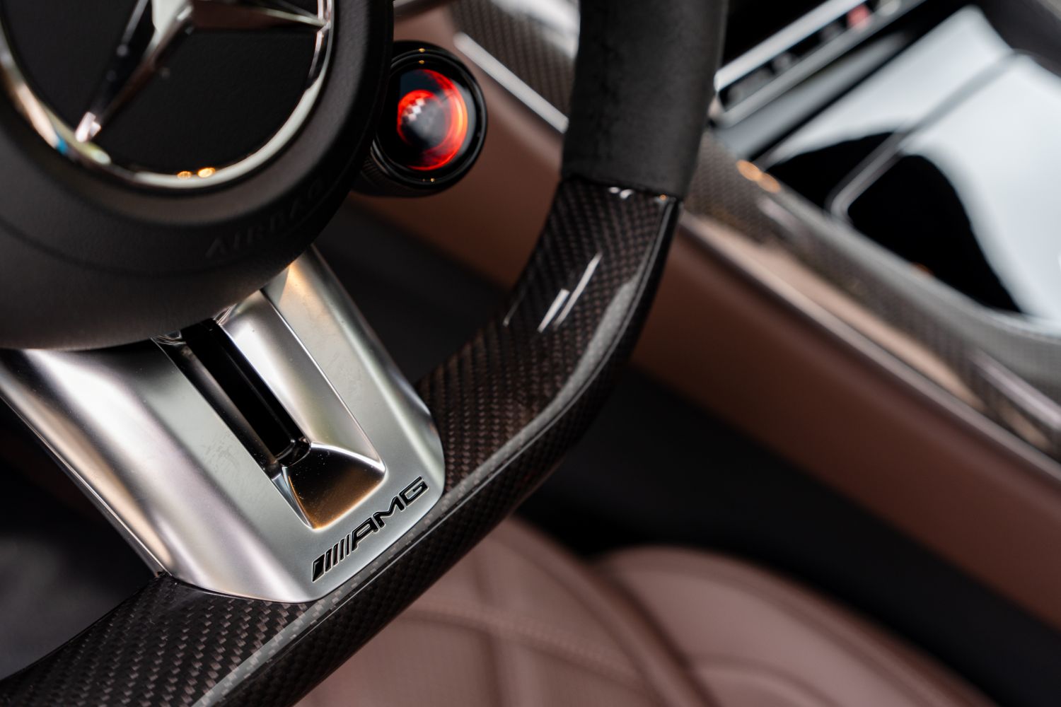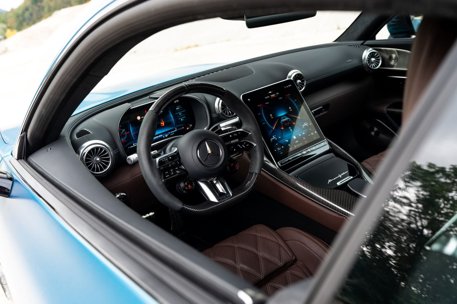 Hoci sa GT 63 PRO vydáva za okruhovú zbraň, riadenie je príjemné, presné a poskytuje akurátny odpor, aby bolo použiteľné aj počas bežných presunov či rýchlejších prejazdov okreskami. Toto kupé má veľa šarmu a vo vodičovi veľmi rýchlo vzbudí dôveru neohrozenej stability, aby mohol kúsok po kúsku zvyšovať rýchlosť v zákrutách. Netušíme, ako sa auto správa na absolútnom limite, či tam je zákerné alebo stále dobre ovládateľné a čitateľné, pretože ako opakujeme, nemali sme k dispozícii uzavretú trať. Tak ako napríklad pri vozidlách BMW Mm aj tu si môžete zvoliť režim pohonu výhradne zadných kolies. Charakteristiku auta tak môžete meniť od rýchlej beštie s vysokou priľnavosťou a trakciou až po chuligána, ktorý na výjazde zo zákruty zanechá veľké čierne stopy.