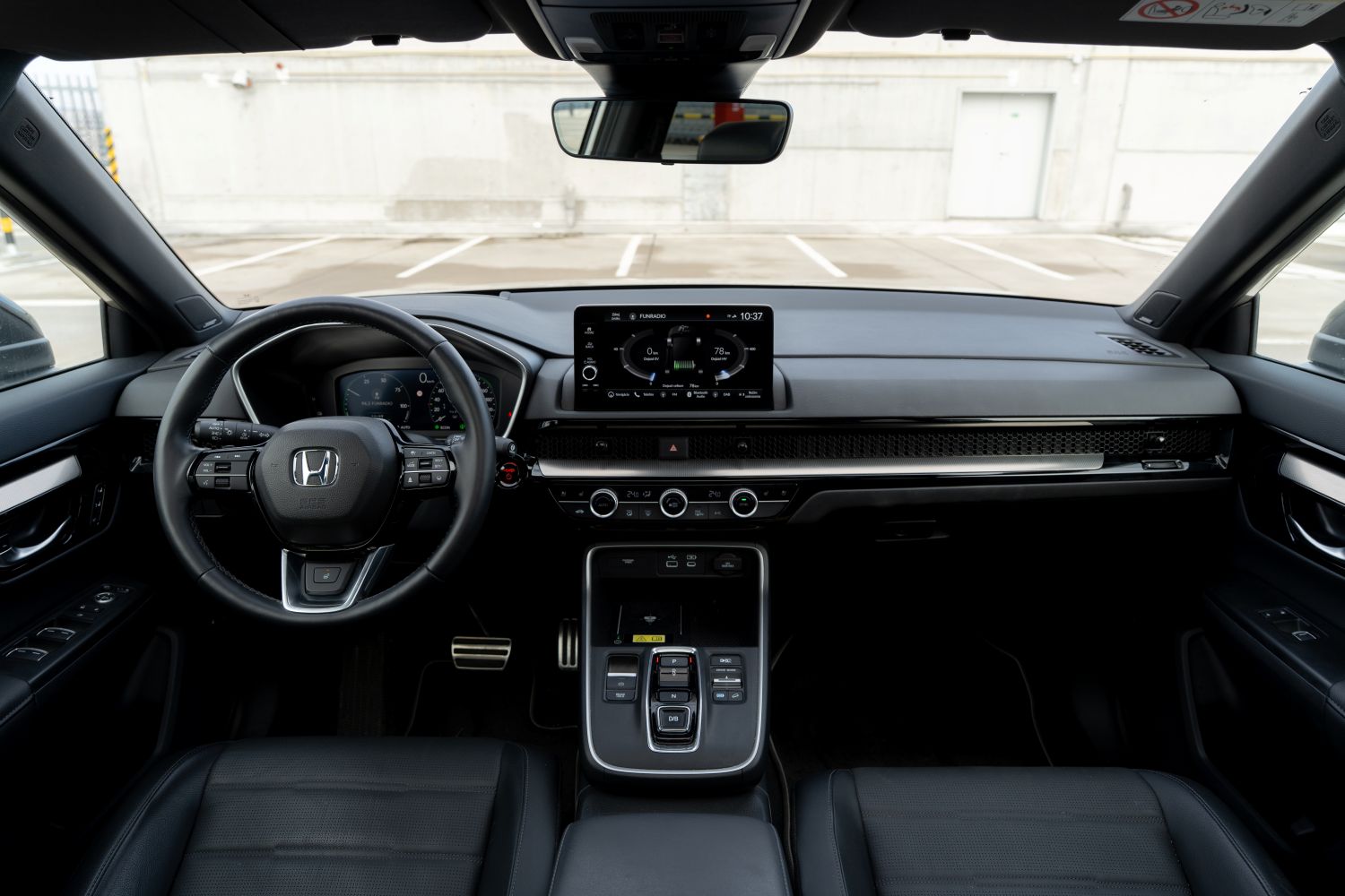 Kabína Hondy CR-V je absolútnym opozitom súčasného trendu integrácie veľkých dotykových obrazoviek a znižovania počtu fyzických tlačidiel. Interiér má priam dokonalú ergonómiu, je elegantný a kvalitne vypracovaný.