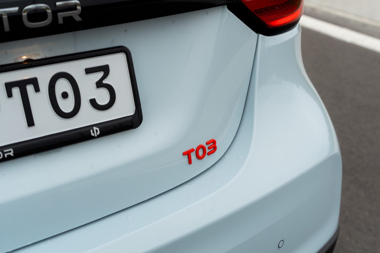 Panoramatické strešné okno a dvojfarebný dizajn zvyšujú jeho estetickú príťažlivosť. Exteriér dotvárajú 15-palcové disky kolies z hliníkovej zliatiny s lúčmi v tvare okvetných lístkov. Model T03 je navyše vybavený najmodernejším systémom osvetlenia, čoho príkladom je zakrivená a ostrá LED dióda DRL, ktorá zahŕňa automatický režim a funkciu “Guide Me Home”, ako aj zadné LED svetlá s pôsobivým dizajnom a ostrými hranami. Vozidlo je vybavené 74 LED jednotkami. V podstate by sme viac ocenili jeho schopnosť osvetlenia v noci, kedy by mohol byť lúč svetla širší a svietiť viac do diaľky. Vonkajšie spätné zrkadlá sú vyhrievané, elektricky nastaviteľné a vybavené integrovanými LED smerovkami.