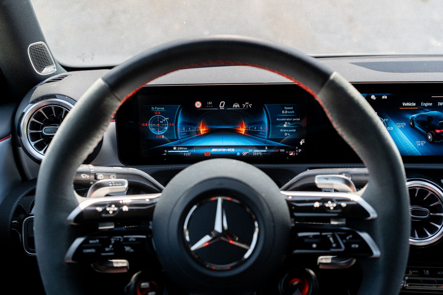 V komfortnom režime je AMG A 45 S príjemným spoločníkom na bežné presuny, no po zvolení jedného z troch športových režimov (Sport, Sport+ a Race) začne sršať energiou. Prísun sily je explozívny, na suchu disponuje perfektnou trakciou, pohon dokáže využiť a efektívne preniesť na cestu každú konskú silu. Krátke prevody pomáhajú držať motor neustále vo vysokých otáčkach, no rovnako dobre je vozidlo čitateľné a ovládateľne aj na mokru, kde však treba pozornejšie pracovať s prenosom váhy, ktorá v rámci segmentu nepatrí medzi najnižšie, práve naopak (1 680 kg).
