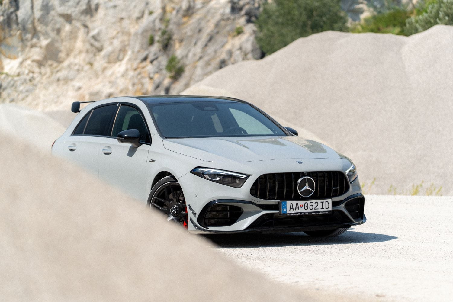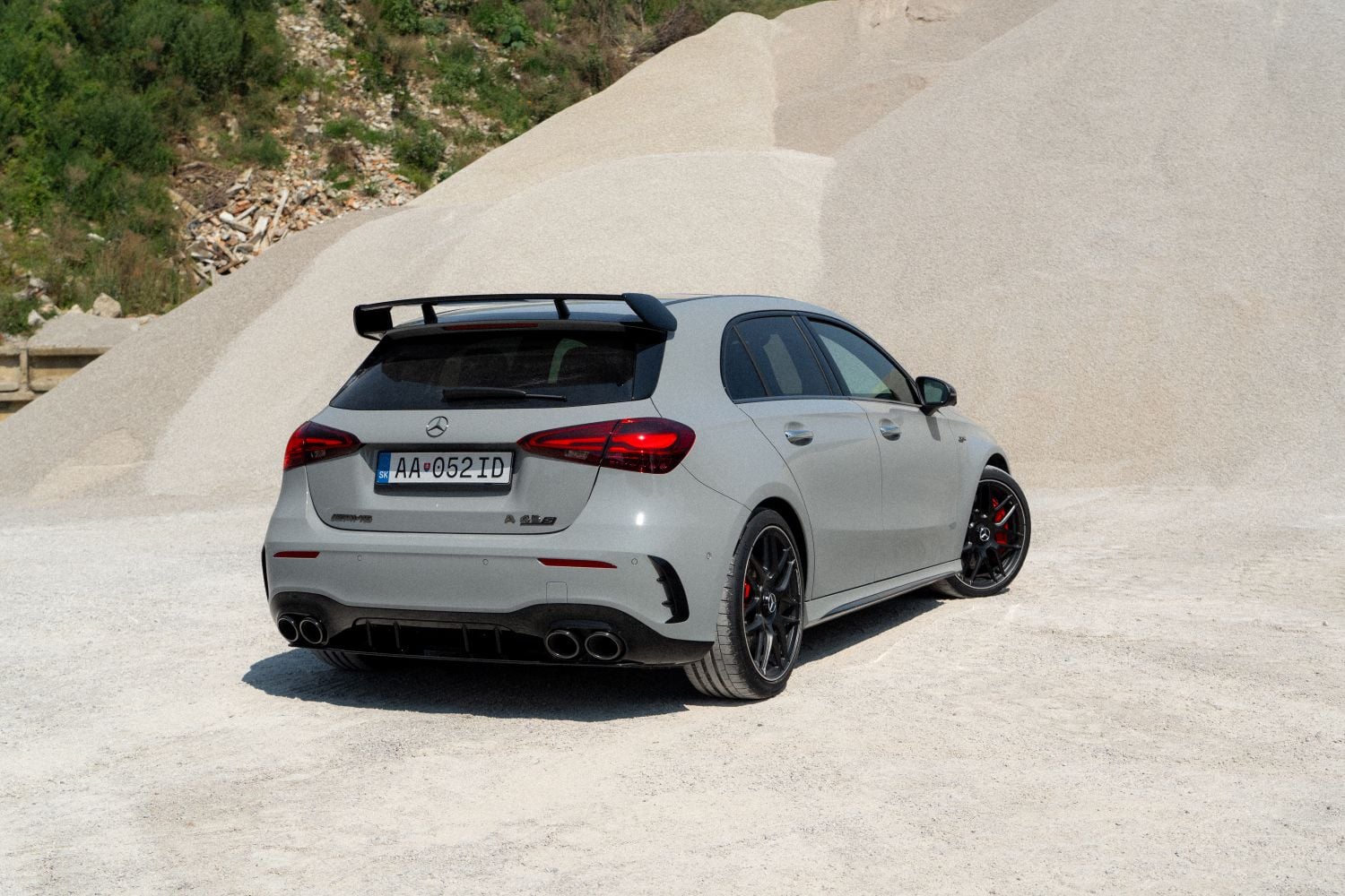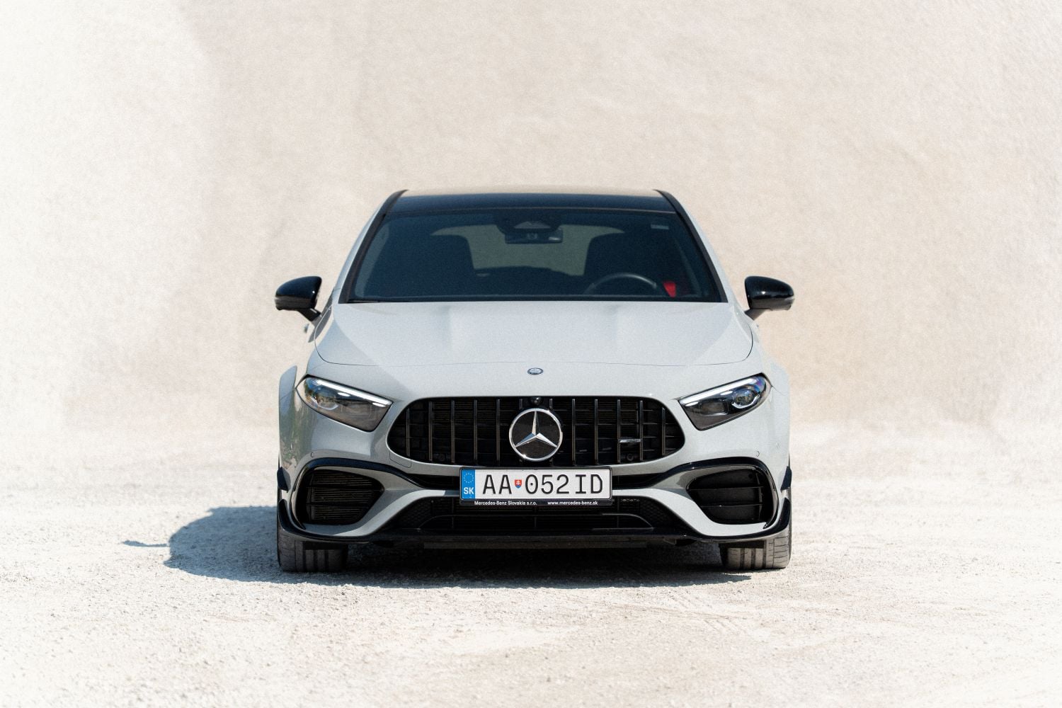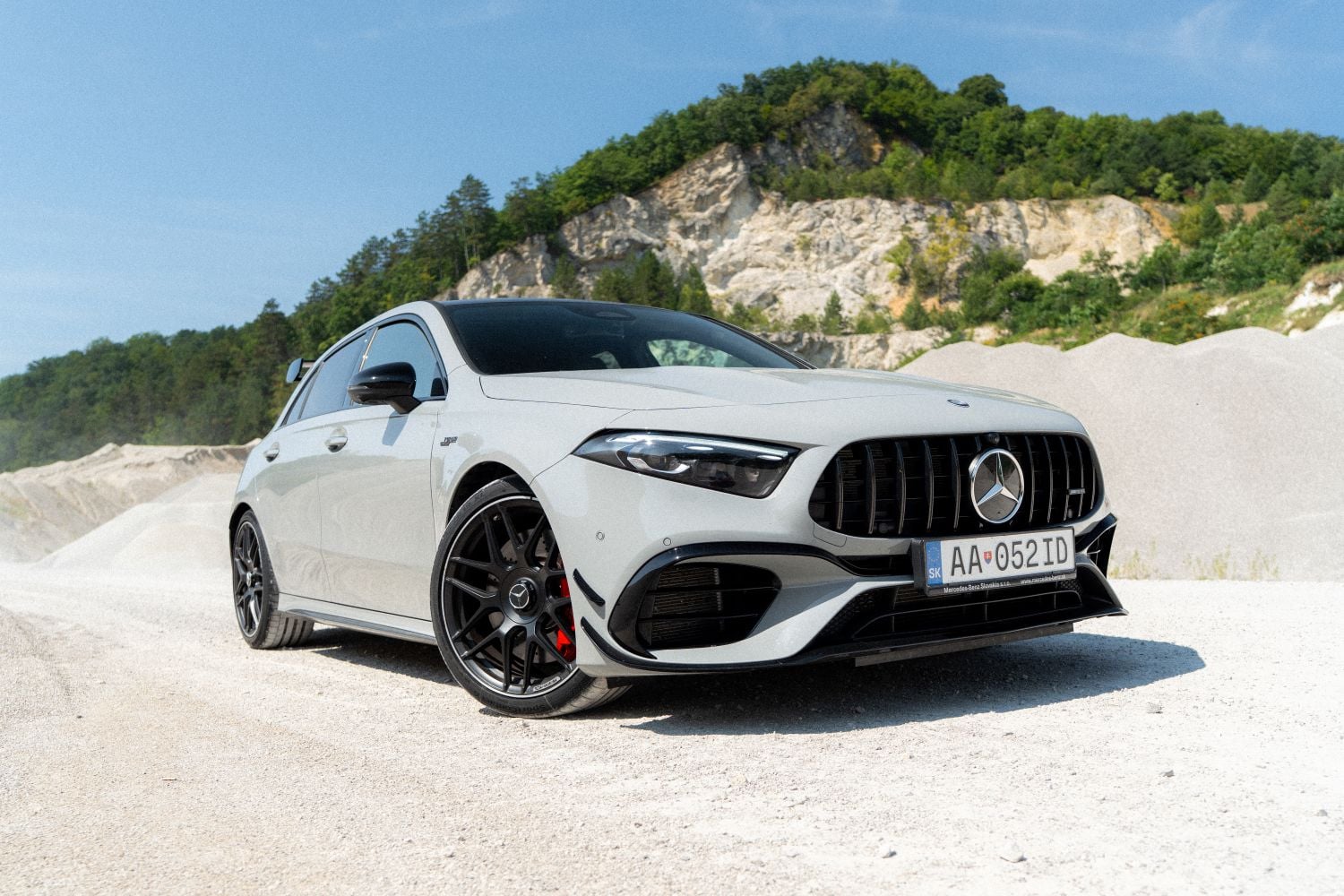 Mercedes-AMG A 45 S 4MATIC+ prešiel ešte v roku 2023 decentným faceliftom. Dostal nové predné svetlomety, upravenú masku chladiča a typická hviezda na kapote bola nahradená logom AMG. Vnútri pribudol nový AMG volant s kruhovými ovládačmi jazdných režimov a nastavení kľúčových komponentov, ktoré uľahčujú prístup k možnostiam meniť charakter vozidla počas jazdy. Informačno-zábavný systém dostal taktiež lepší softvér, no po mechanickej stránke sa model prakticky nezmenil. Nebolo ani treba, veď stále má pod kapotou najvýkonnejší štvorvalcový benzínový motor na svete s litrovým výkonom viac ako 200 koní, efektívnym pohonom všetkých štyroch kolies a inštinktom superšportového vozidla. Naozaj, v prípade AMG A45 S je zvláštne hovoriť o nejakom hothatchi, pretože tu sú výkon a dynamika posunuté do absolútneho extrému.