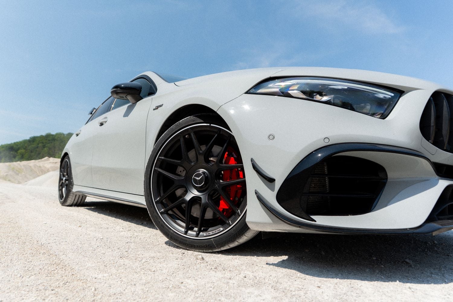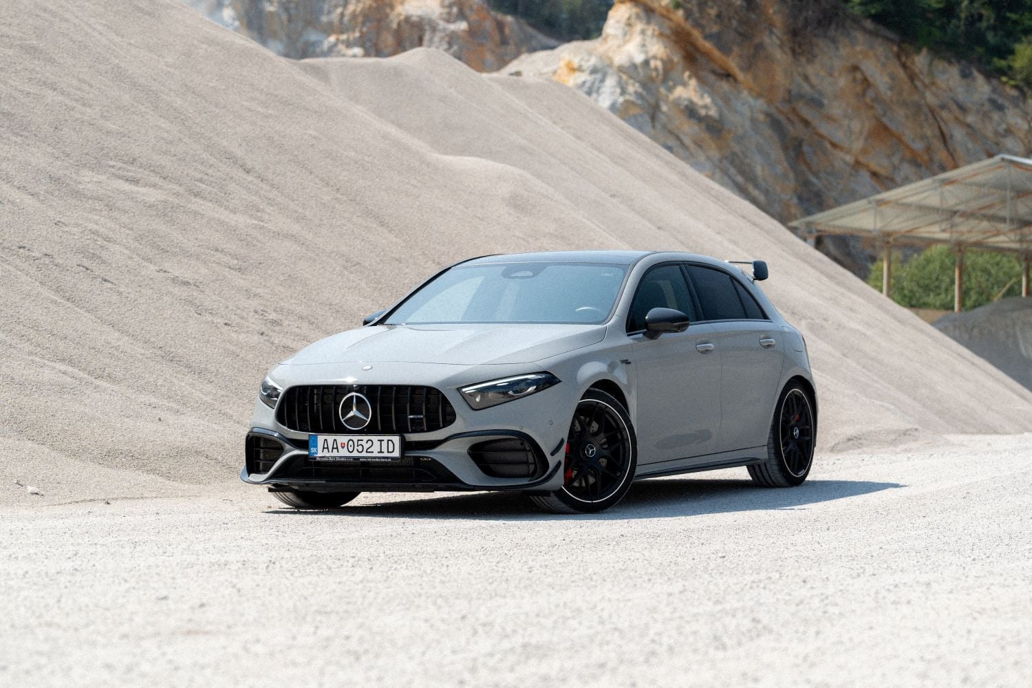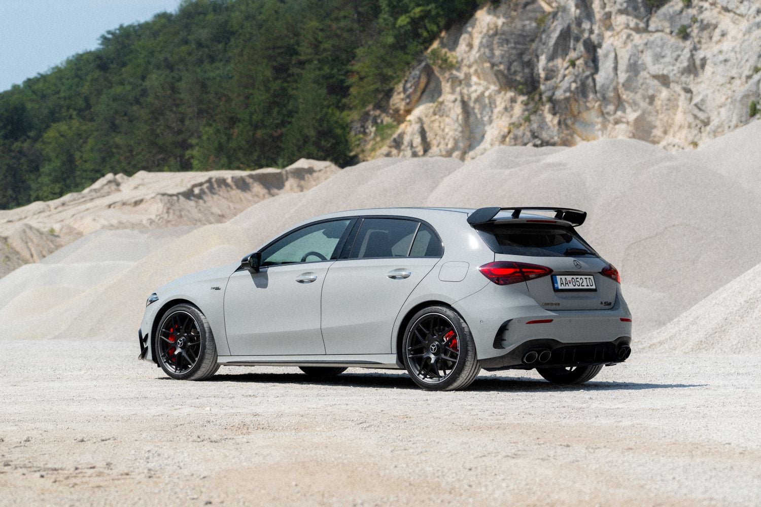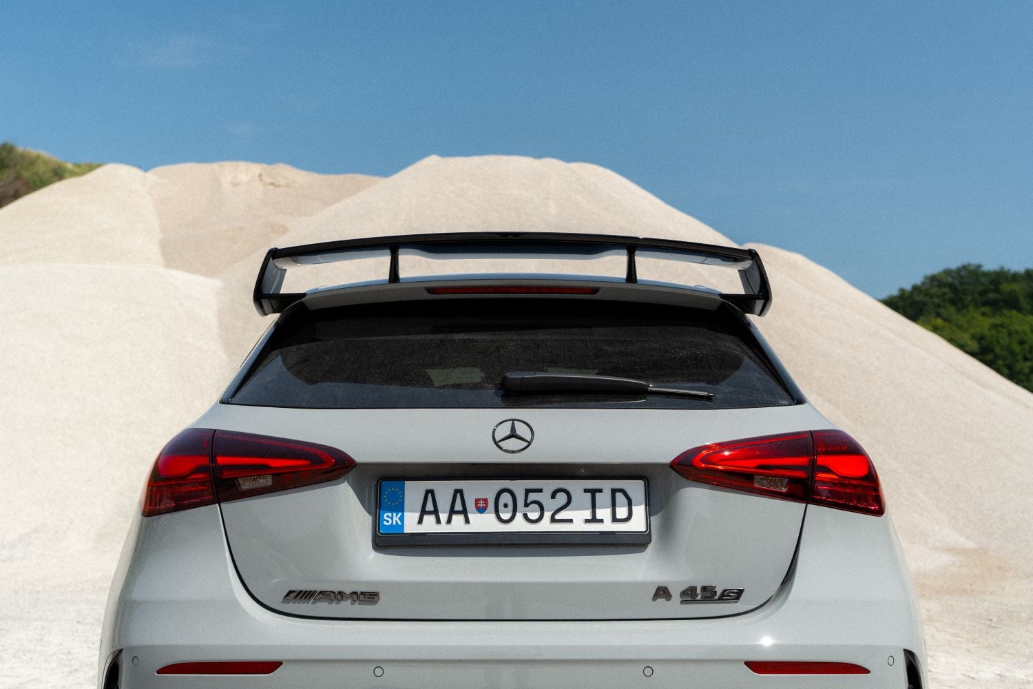 Mercedes-AMG A 45 S 4MATIC+ prešiel ešte v roku 2023 decentným faceliftom. Dostal nové predné svetlomety, upravenú masku chladiča a typická hviezda na kapote bola nahradená logom AMG. Vnútri pribudol nový AMG volant s kruhovými ovládačmi jazdných režimov a nastavení kľúčových komponentov, ktoré uľahčujú prístup k možnostiam meniť charakter vozidla počas jazdy. Informačno-zábavný systém dostal taktiež lepší softvér, no po mechanickej stránke sa model prakticky nezmenil. Nebolo ani treba, veď stále má pod kapotou najvýkonnejší štvorvalcový benzínový motor na svete s litrovým výkonom viac ako 200 koní, efektívnym pohonom všetkých štyroch kolies a inštinktom superšportového vozidla. Naozaj, v prípade AMG A45 S je zvláštne hovoriť o nejakom hothatchi, pretože tu sú výkon a dynamika posunuté do absolútneho extrému.