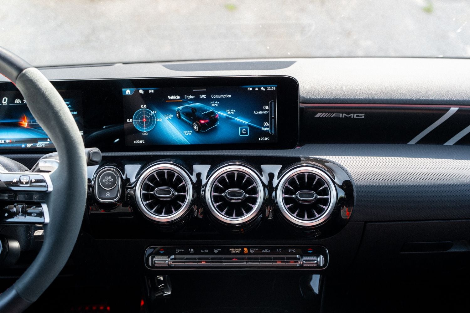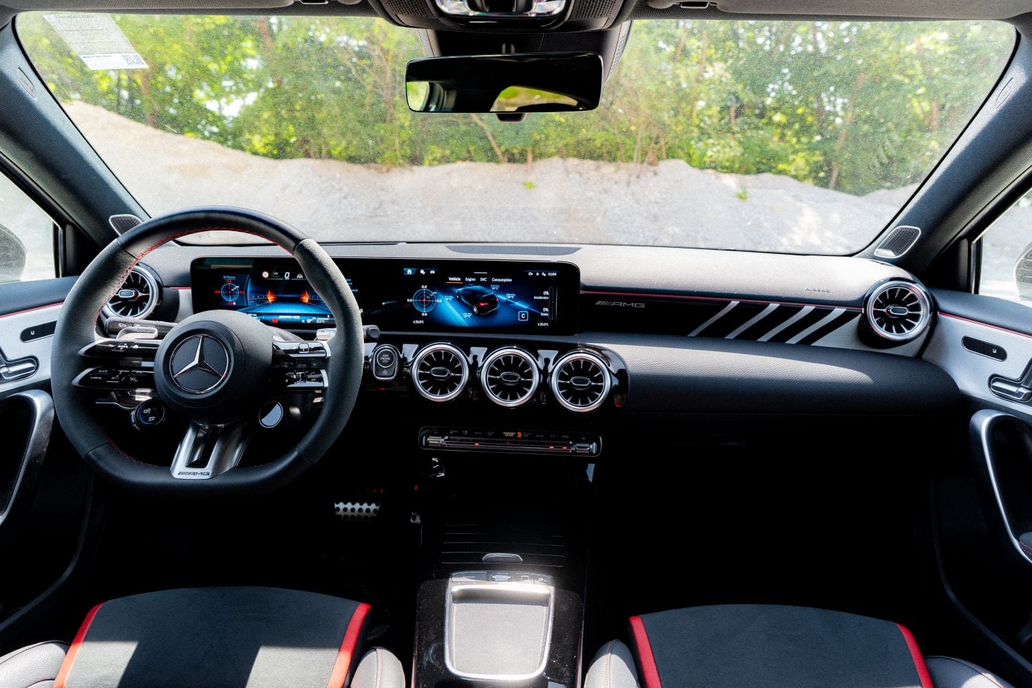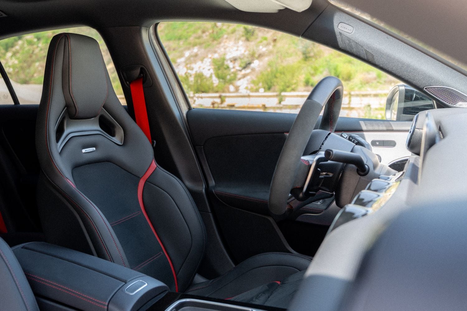V komfortnom režime je AMG A 45 S príjemným spoločníkom na bežné presuny, no po zvolení jedného z troch športových režimov (Sport, Sport+ a Race) začne sršať energiou. Prísun sily je explozívny, na suchu disponuje perfektnou trakciou, pohon dokáže využiť a efektívne preniesť na cestu každú konskú silu. Krátke prevody pomáhajú držať motor neustále vo vysokých otáčkach, no rovnako dobre je vozidlo čitateľné a ovládateľne aj na mokru, kde však treba pozornejšie pracovať s prenosom váhy, ktorá v rámci segmentu nepatrí medzi najnižšie, práve naopak (1 680 kg).