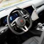 Kabína je miestom, kde Hongqi HS3 príjemne prekvapuje. Sedadlá sú veľmi dobre tvarované. Vodič má elektrické ovládanie v šiestich smeroch a cestovanie na dlhšie trasy je skutočne komfortné. Spolujazdec síce nemá výškové nastavenie sedadla, no priestor v kabíne je dostatočný. Výborné je aj riešenie výhľadu – malé priezory pri A-stĺpiku a posunuté spätné zrkadlá zlepšujú manévrovanie v meste. Interiér ponúka množstvo odkladacích priestorov a držiaky nápojov so silnou aretáciou, takže fľašu otvoríte aj jednou rukou. Volant je jednoduchý, prehľadný a praktický.