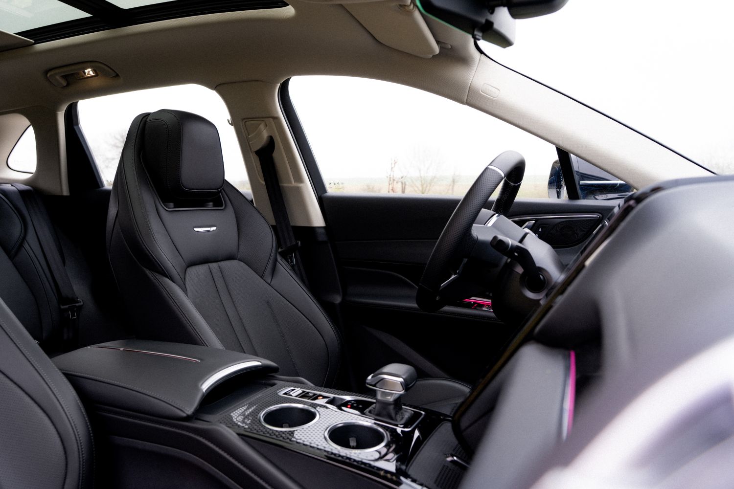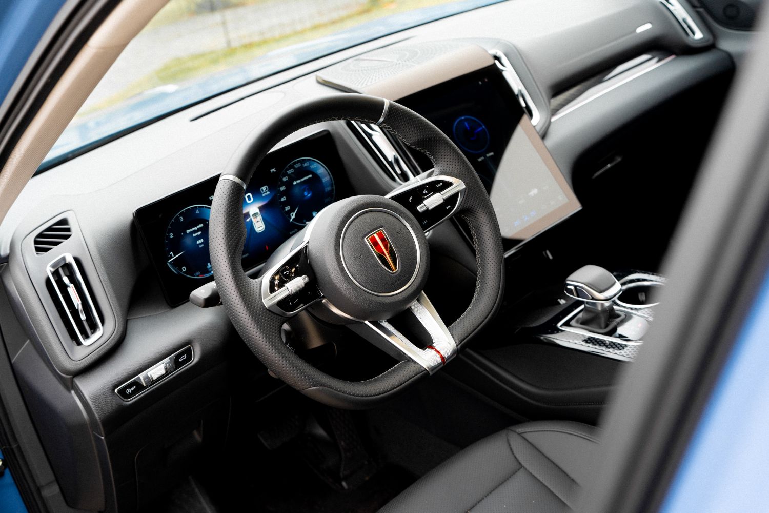 Kabína je miestom, kde Hongqi HS3 príjemne prekvapuje. Sedadlá sú veľmi dobre tvarované. Vodič má elektrické ovládanie v šiestich smeroch a cestovanie na dlhšie trasy je skutočne komfortné. Spolujazdec síce nemá výškové nastavenie sedadla, no priestor v kabíne je dostatočný. Výborné je aj riešenie výhľadu – malé priezory pri A-stĺpiku a posunuté spätné zrkadlá zlepšujú manévrovanie v meste. Interiér ponúka množstvo odkladacích priestorov a držiaky nápojov so silnou aretáciou, takže fľašu otvoríte aj jednou rukou. Volant je jednoduchý, prehľadný a praktický.