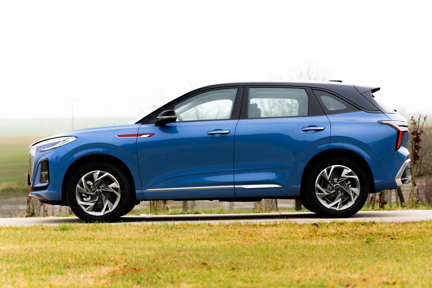 Hongqi HS3 zaujme na prvý pohľad. Predná maska, inšpirovaná tvorbou bývalého šéfa dizajnu Rolls-Royce, pôsobí majestátne, no nejde o lacnú kópiu. Dizajn má vlastný charakter, rovnako ako výrazná červená línia na kapote, ktorá je charakteristickým prvkom značky Hongqi. Full-LED svetlomety svietia solídne, aj keď nedosahujú úroveň európskych prémiových výrobcov, čo je trend typický aj pre iné čínske značky. Profil vozidla zaujme príplatkovou metalickou farbou (jediný prvok extra výbavy) a sériovými 19-palcovými diskami, ktoré zvládajú aj slovenské cesty. Prémiový dojem umocňujú kobercované podbehy vpredu aj vzadu – detail, ktorý v tejto cenovej kategórii bežne nevidíme.
