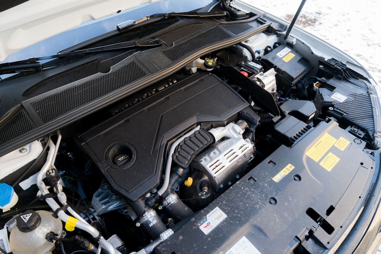 Benzínový trojvalec s objemom 1,2 litra a výkonom 136 koní je doplnený o malý elektromotor s výkonom 28 k a 55 Nm uložený v 6-stupňovej automatickej prevodovke. Táto mild-hybridná sústava má teda systémový výkon 145 k a 230 Nm. Mild-hybrid tu neslúži len na pomoc pri rozbiehaní a pri akcelerácii, ale dokáže vozidlom pohybovať niekoľko stoviek metrov, čím znižuje spotrebu. Malá batéria s kapacitou 0,88 kWh sa dobíja buď rekuperáciou alebo to robí priamo spaľovací motor.