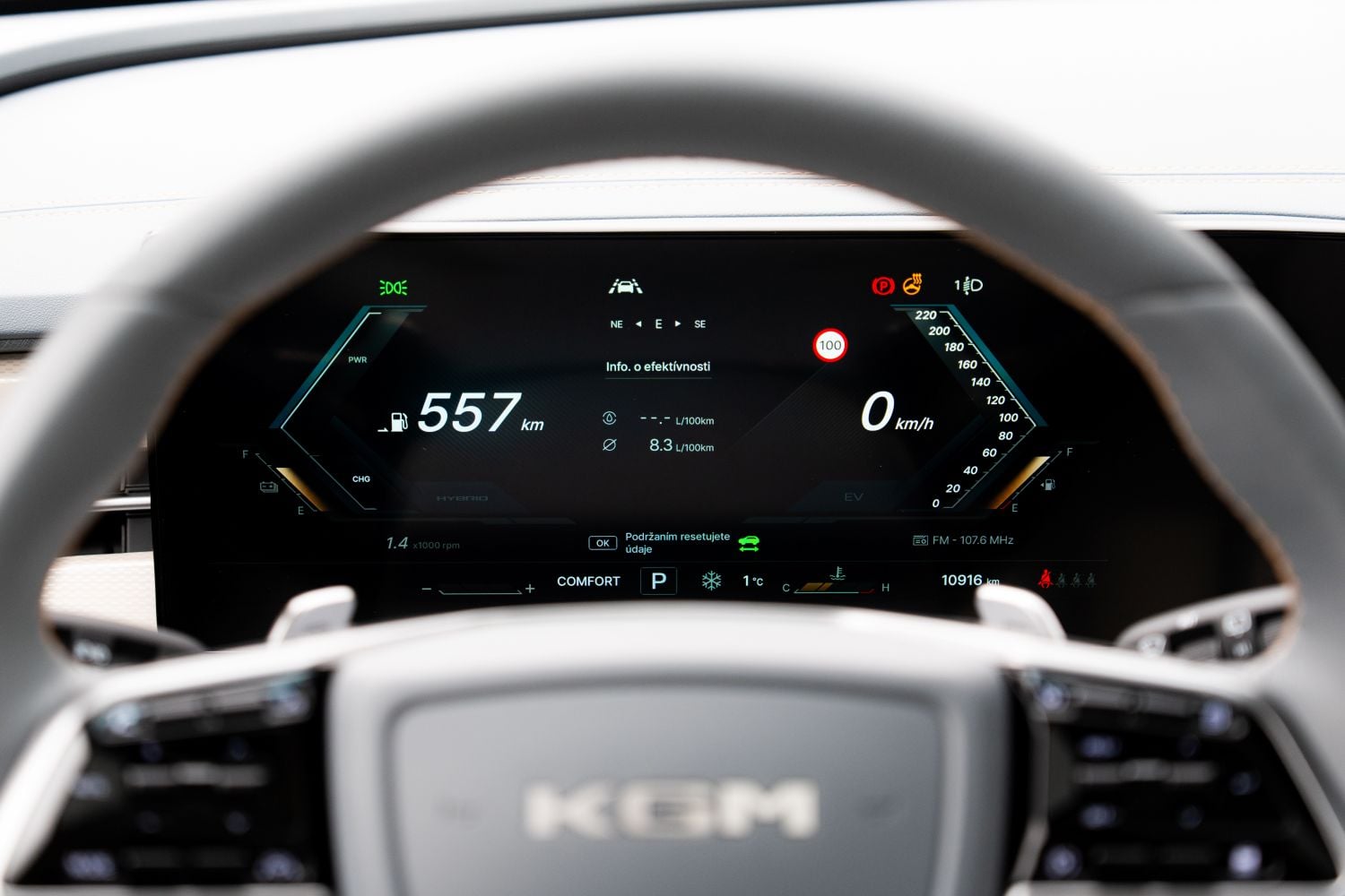 Ak by vás to zaujímalo, hybridný systém vychádza z kuchyne čínskej značky BYD. Tá zatiaľ na Slovensku neponúka žiadne vozidlo s klasickým full-hybridným pohonom, ale orientuje sa skôr na plug-in hybridy. V prípade modelu Torres ide o klasický paralelný hybrid, čo znamená, že pohon kolies obstaráva nielen elektromotor ale aj samotný spaľovací motor. 1,5-litrová spaľovacia jednotka používa priame vstrekovanie paliva, je prepĺňaná turbodúchadlom a pracuje v Millerovom cykle. Dosahuje najvyšší výkon 150 koní a 220 Nm, čo sú klasické hodnoty v prípade podobných hybridných sústav. Je to však celkom iný motor, aký používa KGM v iných spaľovacích modeloch. Elektromotor je výkonnejší, má až 177 koní a 300 Nm. Keď sa tieto dve entity spoja, dokážu generovať systémový výkon 204 koní. Batéria má na pomery full-hybridov relatívne veľkú kapacitu 1,83 kWh, ale v skutočnej premávke využíva hybridný systém väčšinou len zlomok svojej kapacity.