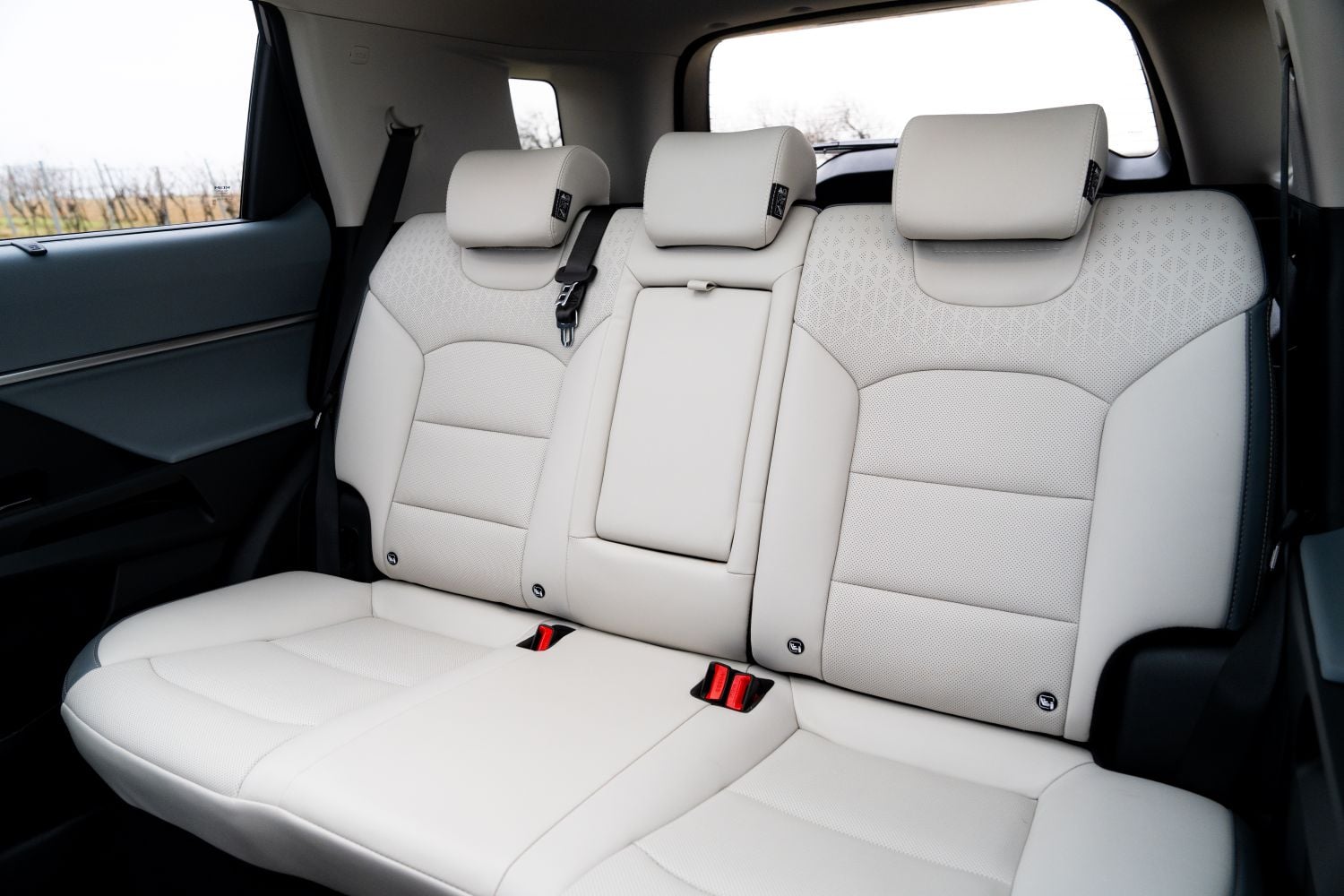 Aj vnútri to Torres hrá na komfort. Luxusný pocit má navodiť dvojfarebné kožené čalúnenie a vo výbave Premium toho Torres poskytuje naozaj dosť. Napríklad vyhrievaný volant, elektricky nastaviteľné predné sedadlá, 20-palcové disky kolies, kolenný airbag vodiča, držiaky na tablet, bezdrôtové nabíjanie mobilného telefónu, roletky proti slnku na zadných oknách či elektrické otváranie dverí batožinového priestoru. Priplatiť si môžete za veľké panoramatické okno či 360-stupňovú kameru. To by sme možno oželeli, pretože obraz zadnej parkovacej kamery je skutočne široký a má tiež nadštandardnú kvalitu. Ani čo sa týka materiálov, tak Torres neurazí. Vzhľadom k tomu, že to s cenou nijak nepreháňa, potešia čalúnené výplne dverí i kvalitné kožené čalúnenie sedadiel.