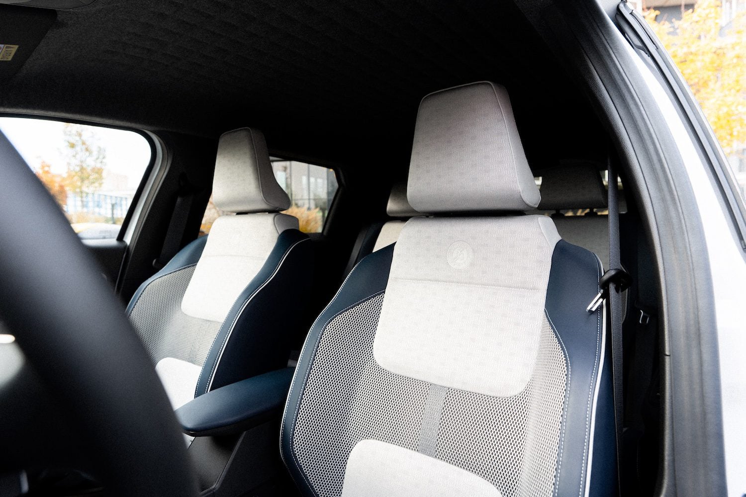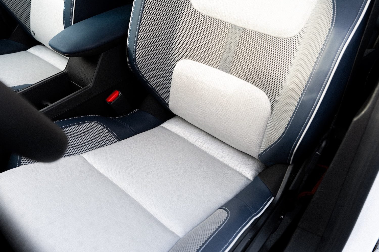 Vnútri auta je špeciálne svetlosivé čalúnenie s grafickým tkaním inšpirovaným funkčným oblečením zo sveta športu. Táto plne recyklovaná textília obsahuje niekoľko prvkov tkania, vrátane operadla v tvare písmena H. Operadlá predných sedadiel sú zdobené logom Roland Garros. Látka sedadla je viditeľná aj na paneloch dverí a pásiku prednej časti.
