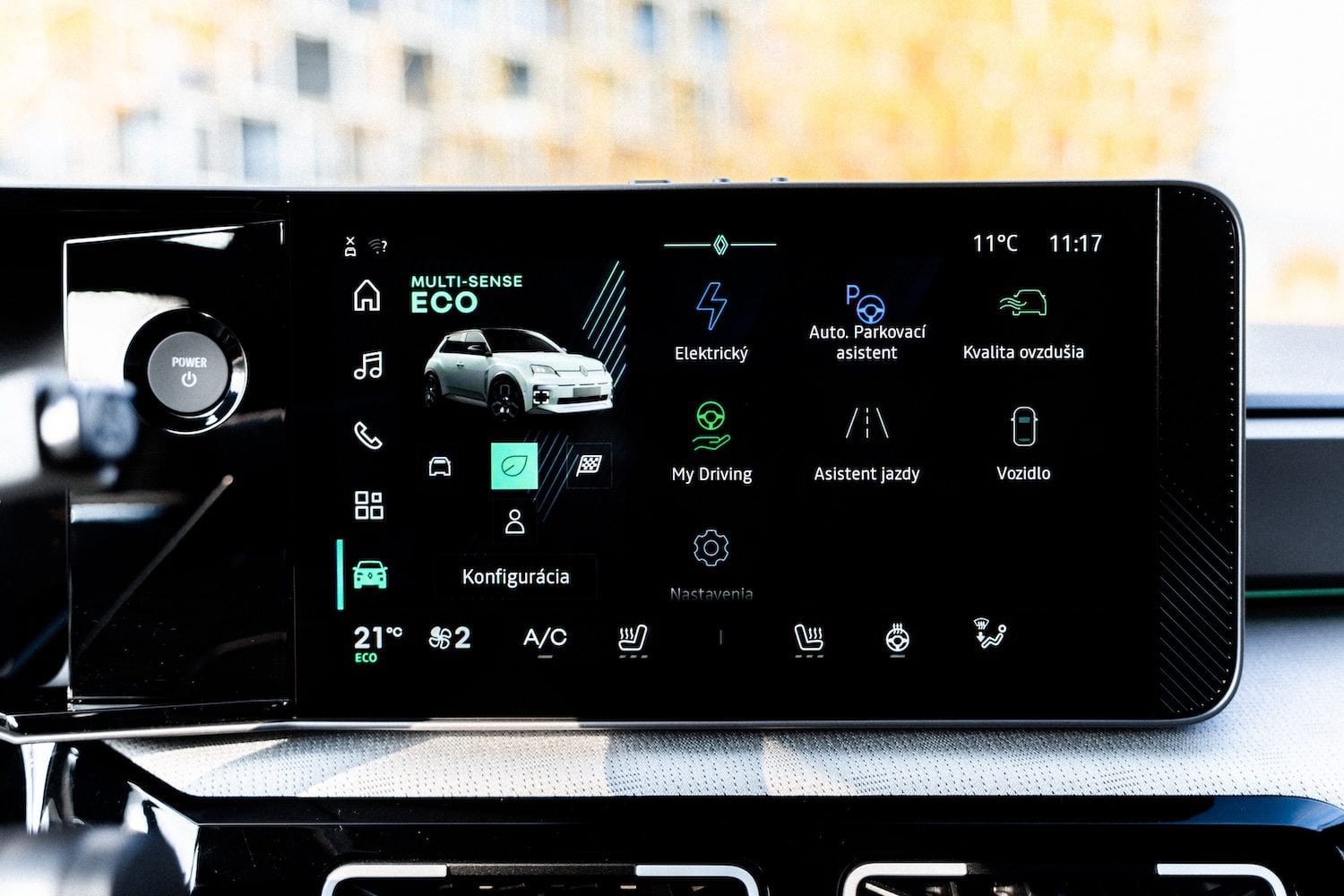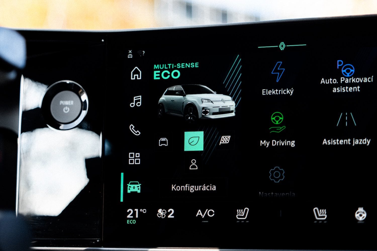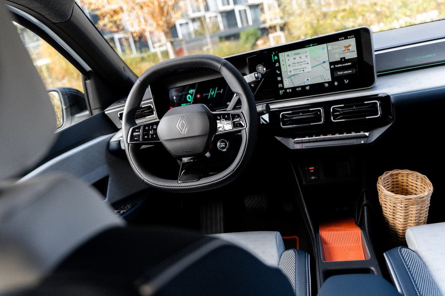 Celé auto je posiate niekoľkými milými, ale aj vtipnými odkazmi na tenisovú edíciu. Renault 5 si nás tak získal kvalitne spracovaným interiérom a použitými materiálmi. Centrálna konzola obsahuje indukčnú nabíjaciu podložku pre smartfóny vo farbe antuky, čo už v dnešnej dobe nesmie chýbať ani vo vozidlách tohto segmentu a hlavne pri tejto takmer prémiovej cenovej relácii. Brúsené hliníkové prahy dverí zdobí Kríž svätého Ondreja, inšpirovaný architektúrou štadióna Roland Garros a nezabudlo sa ani na držiak na bagetu.