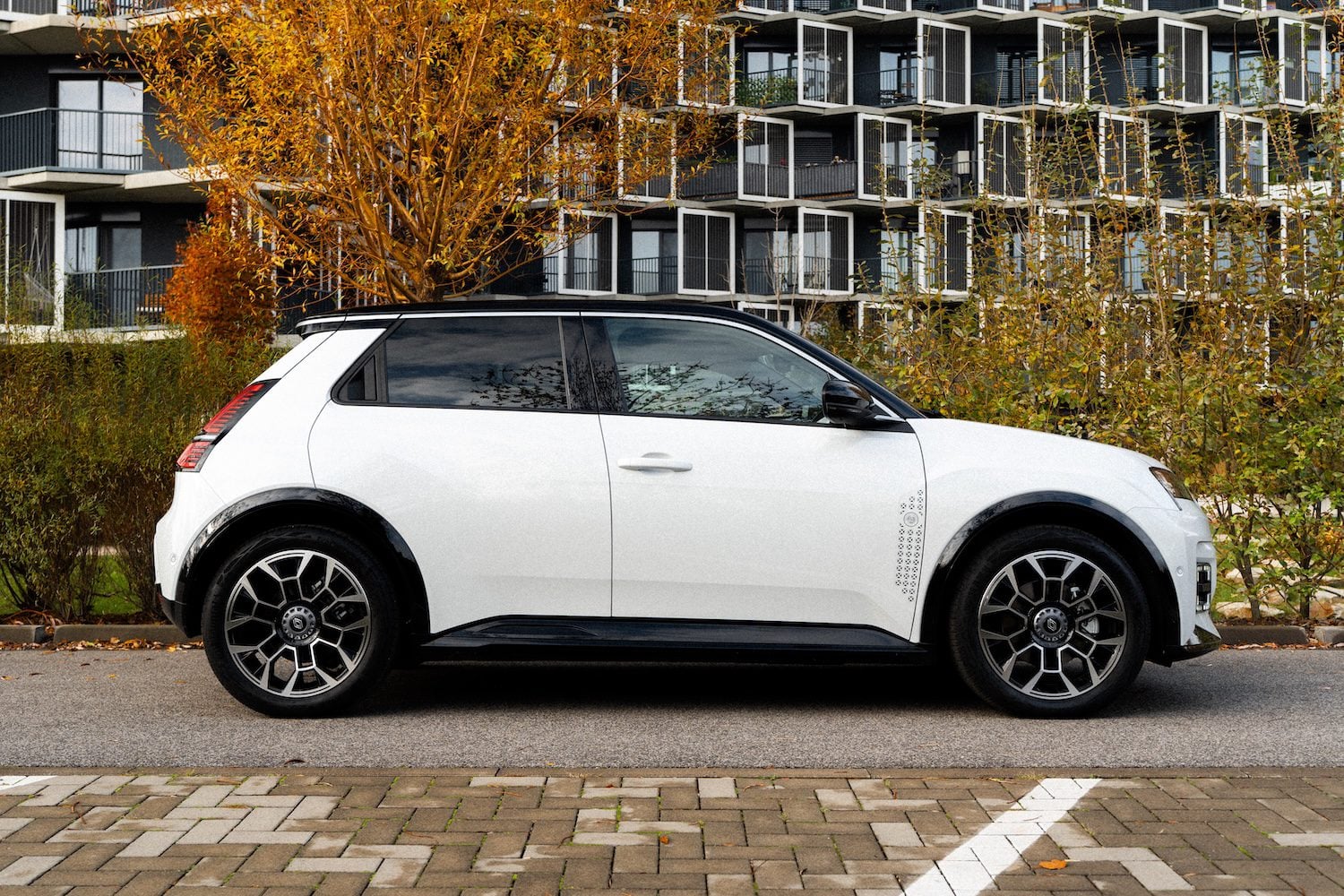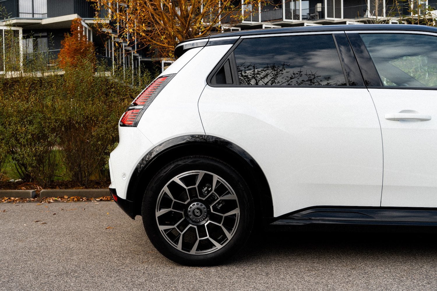 K dispozícii sú v prípade edície Renault 5 E-Tech Roland Garros štyri farby karosérie: perleťová biela, polnočná modrá, hviezdne čierna a odtieň matnej bridlicovo sivej. My sme testovali exemplár v bielej farbe a už dávno neplatí, že biela farba je tá základná. Skôr sa začína vracať trend, že biela stelesňuje prémiovosť. Táto farba dokonale ladí s chrómovým saténovým strešným obložením a 18-palcovými diskami s diamantovým rezaním v lesklej čiernej farbe.