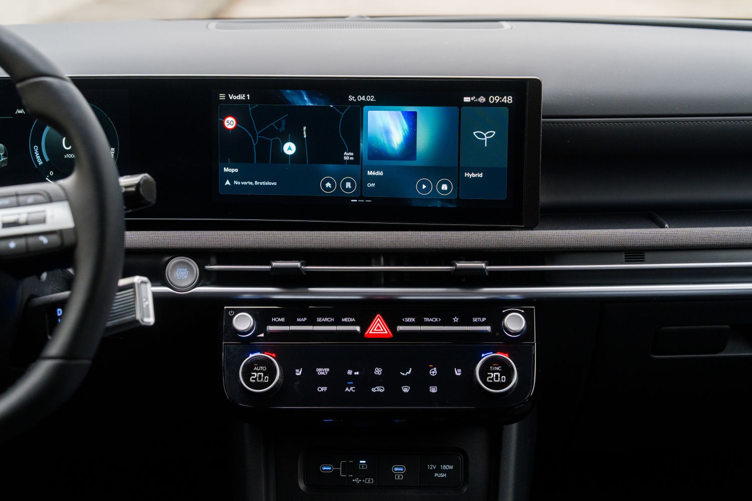 Hybridný pohon pre vozidlá modelového roka 2026 má o 20 koní vyšší výkon a na ceste je to cítiť. Príjemným spôsobom klesla aj spotreba paliva. Predchádzajúca verzia hybridu bola často kritizovaná za príliš vysokú spotrebu, ale to sa Hyundaiu podarilo dostať pod kontrolu. Napríklad na okreskách sme aj v zimných podmienkach jazdili so spotrebou len 5,5 l/100 km, čo je na SUV s pohonom všetkých kolies výborný výsledok. Batéria má kapacitu 1,5 kWh, takže Tucson dokáže pri konštantnej mestskej rýchlosti prejsť aj kilometer či dva len na elektrinu. Hybridný systém však disponuje len dvoma jazdnými režimami – eko a šport. Ak chcete niečo medzi, tak to tu jednoducho nie je. Správanie auta v eko režime nemusí každému vyhovovať, na druhej strane ani športový režim v mestskej premávke nie je optimálny. Na diaľnici sa už prejavia typické nedostatky hybridných systémov a aj spotreba vyletí vyššia, v tomto prípade na hranicu 9 litrov.