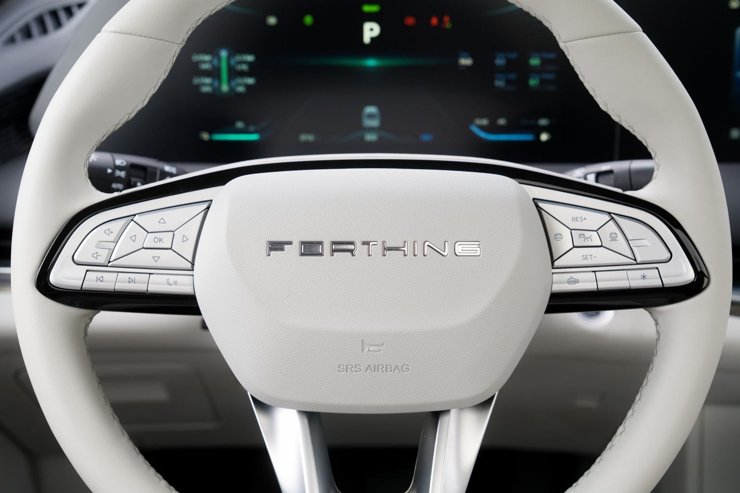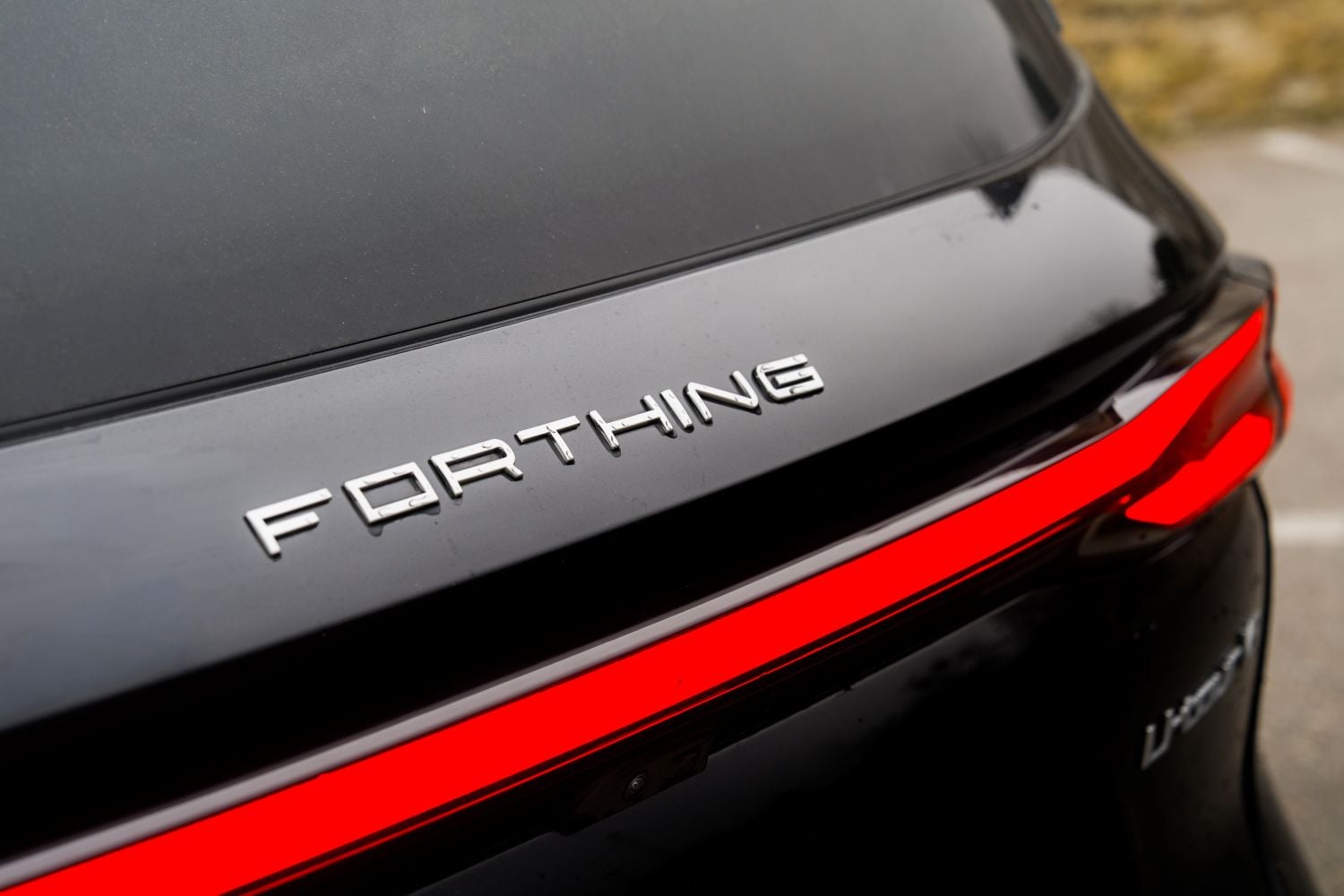 Svetelný podpis s LED technológiou ale neponúka najmodernejšie matrixové riešenia. Zadná časť vozidla je nemenej výrazná, pričom typické svetelné prvky s tromi pásikmi jasne odkazujú na identitu značky Forthing. Celkovo auto nepôsobí lacno ani utilitárne, skôr sa snaží kombinovať robustnosť s náznakom luxusu, čo je v tejto kategórii pomerne neobvyklé.