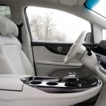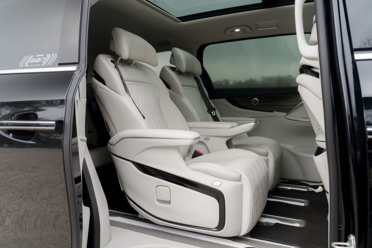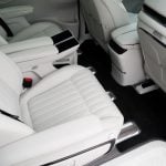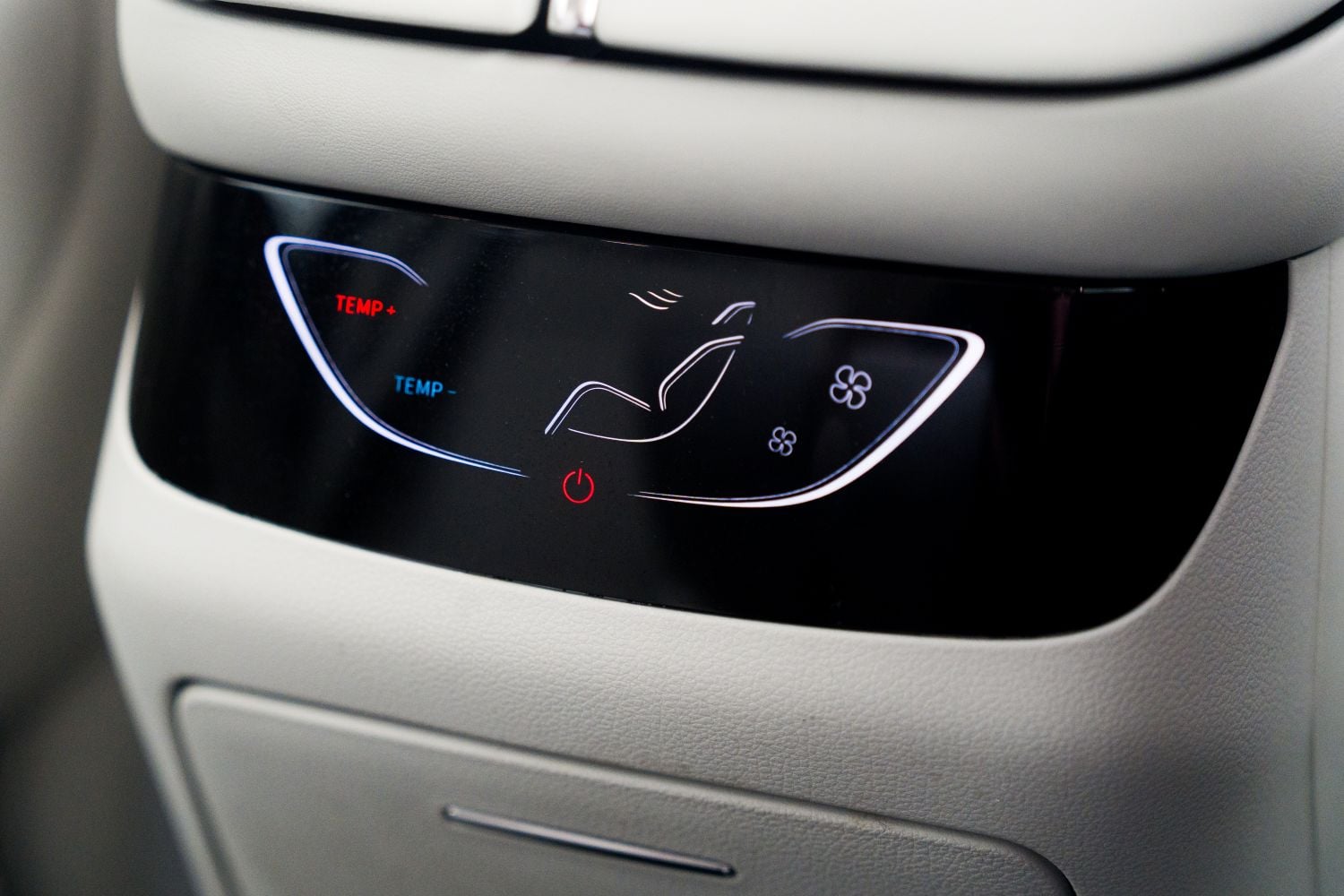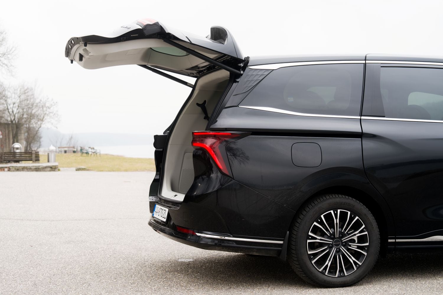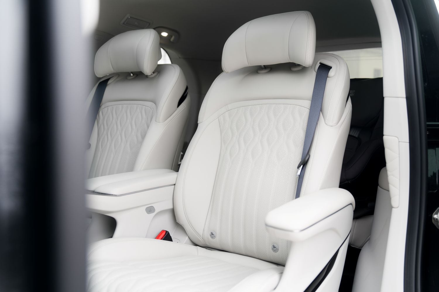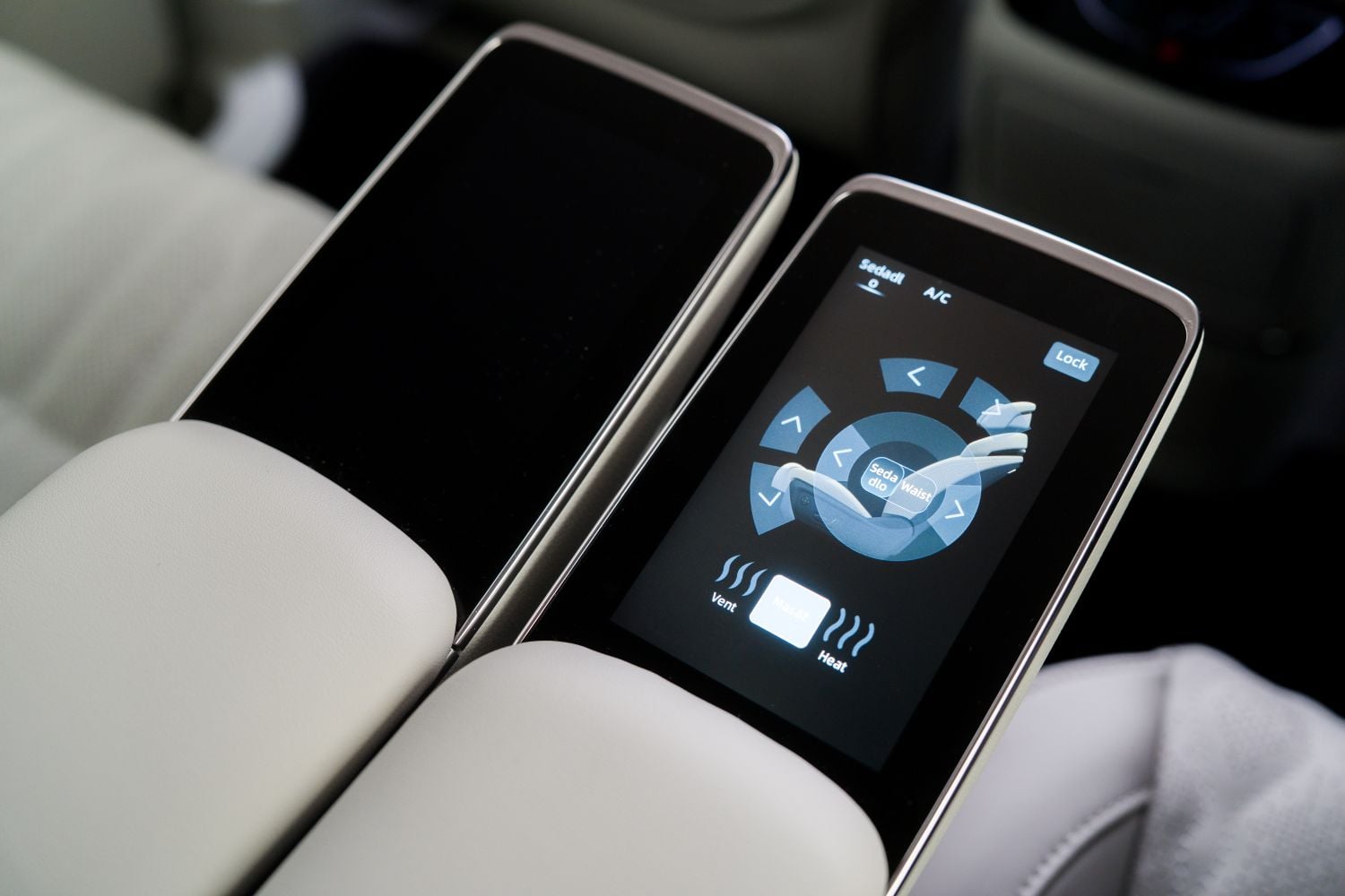 Druhý rad sedadiel je doslova highlightom celého auta, pretože ponúka tzv. kapitánske kreslá, ktoré svojou výbavou a komfortom pripomínajú biznis triedu v lietadle. Sedadlá sú elektricky nastaviteľné, ponúkajú vyhrievanie, ventiláciu aj masážnu funkciu a nechýba im ani možnosť aktivovať takzvaný prezidentský režim, pri ktorom sa vysunie opora na lýtka a cestujúci sa môže takmer celý natiahnuť. Pocit z cestovania na zadných sedadlách je v tomto prípade naozaj výnimočný a ide o jeden z najväčších tromfov celého auta.