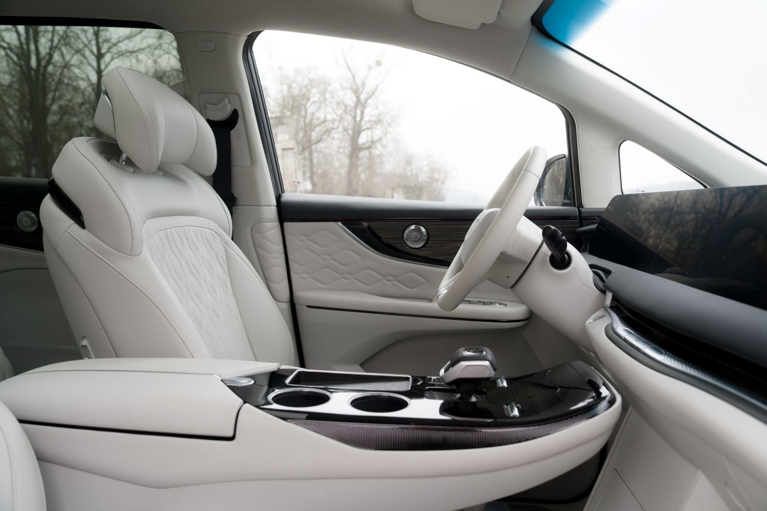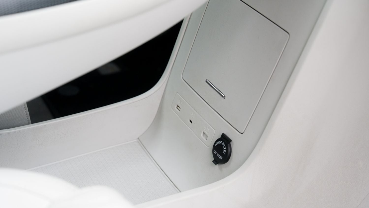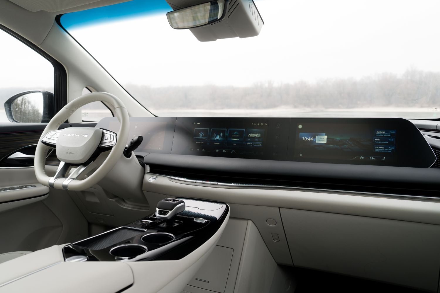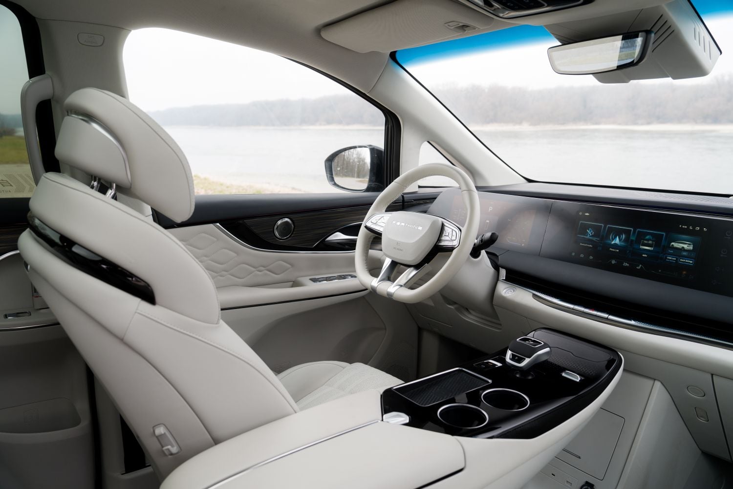 Okrem samotného komfortu sedadiel si V9 dáva záležať aj na praktických detailoch, ktoré zvyšujú jeho použiteľnosť v každodennom živote. Nájdeme tu množstvo úložných priestorov, kvalitne spracované stolíky s robustnou konštrukciou, viacero USB portov vrátane výkonných USB-C konektorov, 12-voltové zásuvky či výsuvné držiaky na nápoje. Zaujímavým detailom je aj možnosť otvoriť zadné okná, čo nie je v tejto kategórii samozrejmosťou.