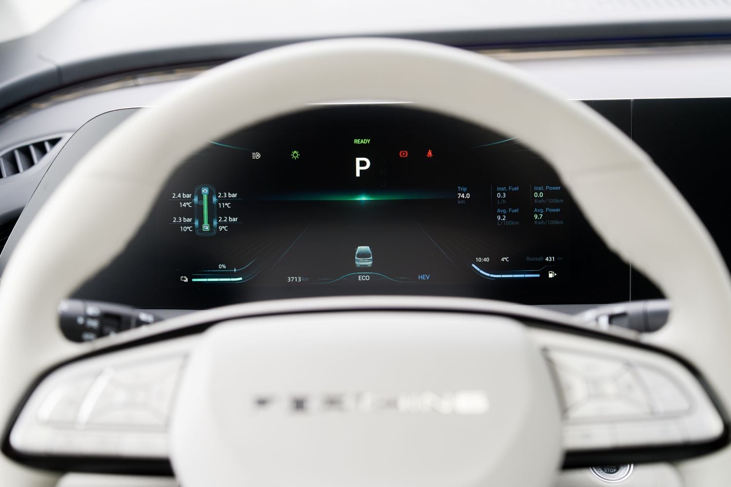 Pod kapotou sa nachádza hybridná pohonná jednotka kombinujúca 1,5-litrový benzínový motor s elektromotorom, pričom celkový výkon dosahuje 180 kW. Na papieri ide o veľmi slušné hodnoty, ktoré sa v praxi prejavujú dostatočnou dynamikou aj pri plnom obsadení vozidla. Forthing U-Tour V9 ponúka viacero jazdných režimov, pričom aj v ekologickom režime dokáže elektromotor poskytnúť citeľnú podporu pri akcelerácii. Napriek tomu však hybridný systém nefunguje tak efektívne, ako by sa dalo očakávať, pretože elektromotor sa nezapája vo všetkých situáciách, kde by to bolo vhodné, čo má negatívny vplyv na spotrebu.