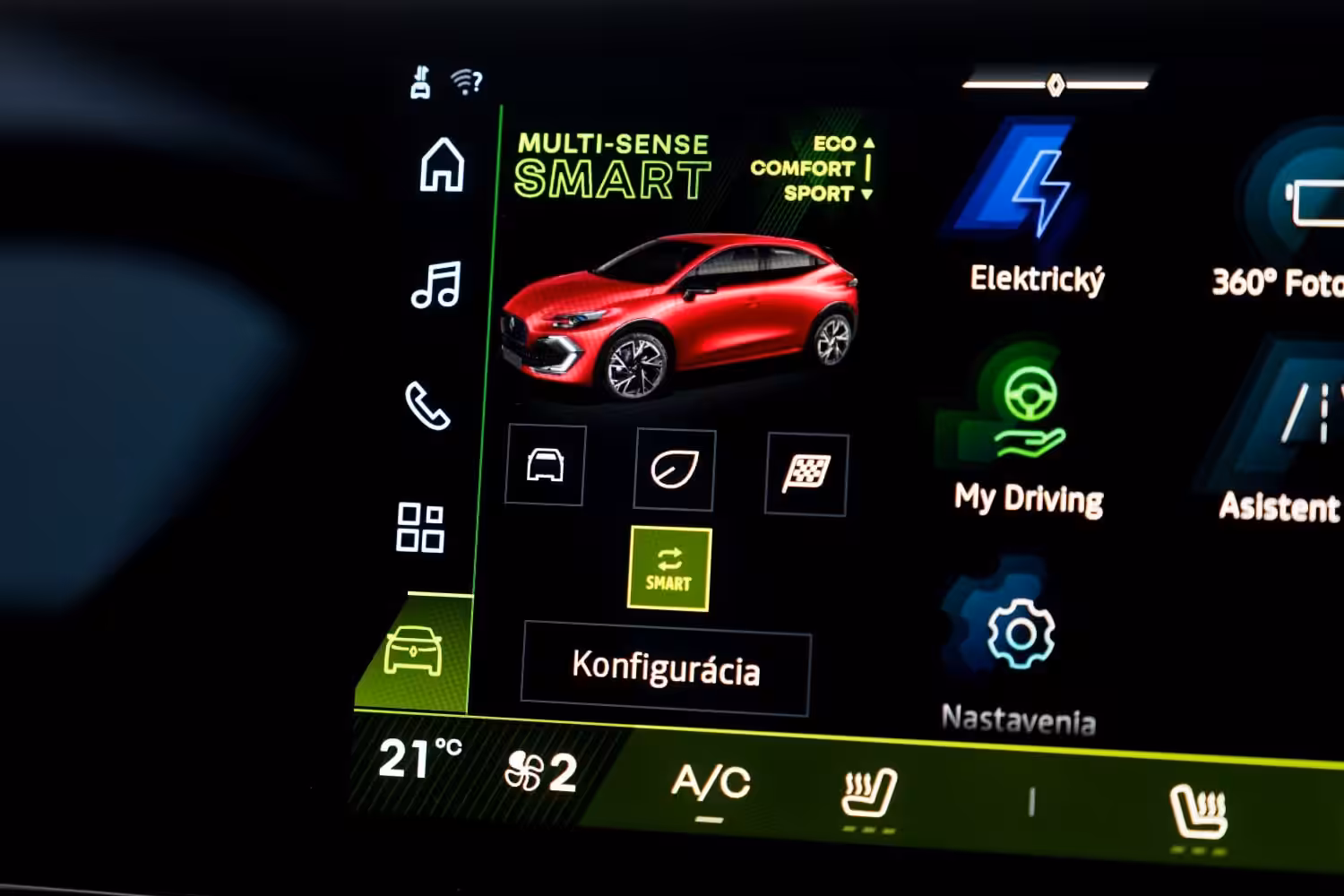 Ambientné osvetlenie interiéru na prvý pohľad zaujme, avšak v noci môže miestami rušiť, najmä v periférnom videní. Našťastie sa dá jednoducho stlmiť. Praktické riešenia nechýbajú ani v oblasti odkladacích priestorov, napríklad variabilná stredová priehradka či dobre navrhnutá bezdrôtová nabíjačka, ktorá drží telefón na mieste.