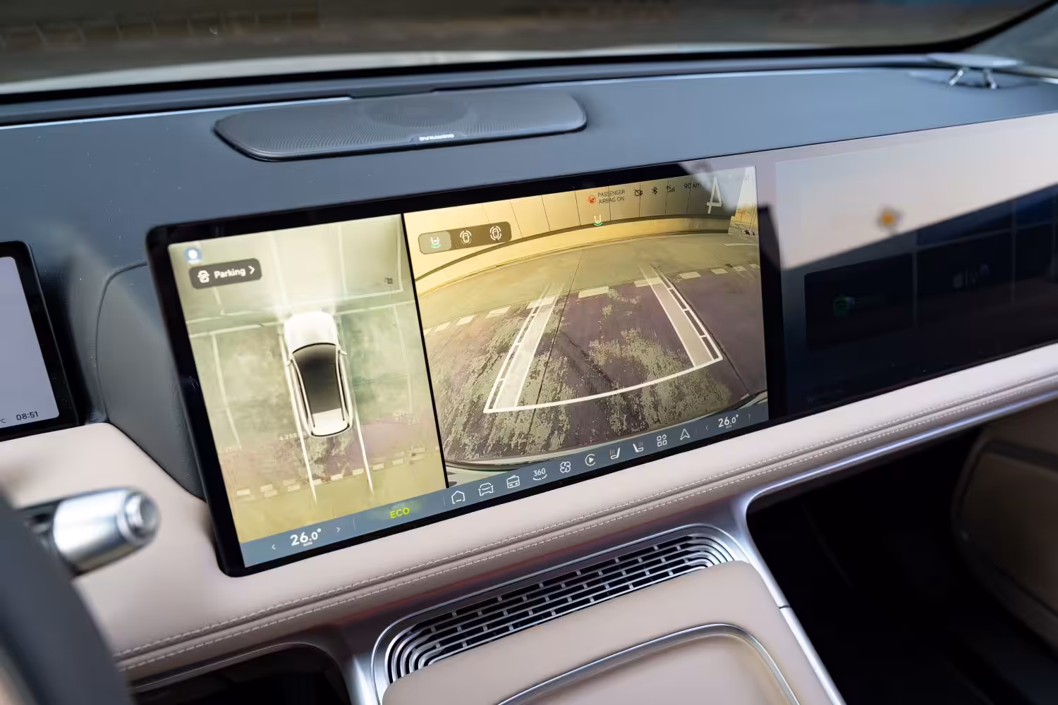 Technologicky zaujímavý je aj parkovací asistent. Zobrazenie v rozšírenej realite patrí k tomu najlepšiemu, čo dnes v automobilovom svete nájdete. Auto dokáže zaparkovať presne, plynulo a spoľahlivo, a to aj v náročnejších situáciách. Navyše, k dispozícii je aj diaľkové parkovanie cez mobilnú aplikáciu, kde stačí podržať jedno tlačidlo a vozidlo si poradí samo.