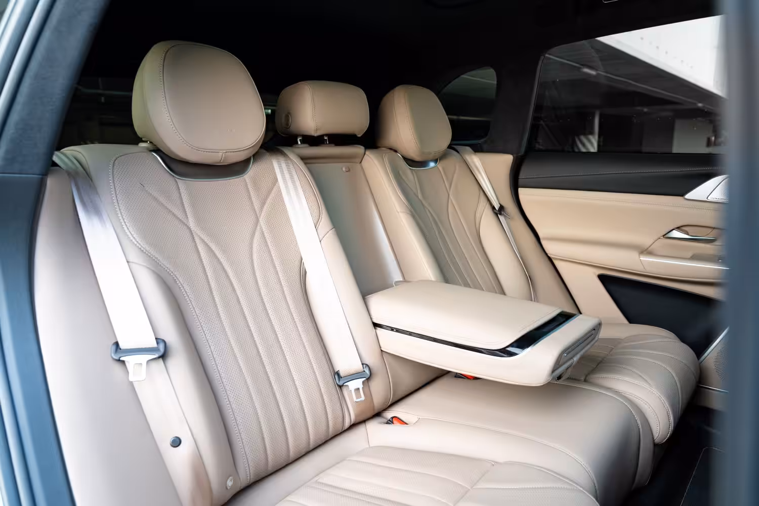 Výbava sedadiel je však veľmi bohatá. Všetky štyri sedadlá sú vyhrievané, ventilované a disponujú aj masážnou funkciou. Zadné sedadlá navyše ponúkajú elektrické nastavenie sklonu operadla a možnosť predĺženia sedáka, čo ocenia najmä vyšší pasažieri. Celkovo ide o veľmi komfortné miesto aj na dlhé cestovanie.