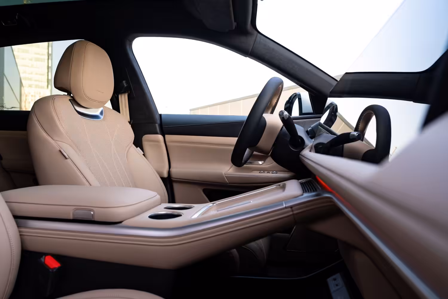 Interiér ako taký prešiel len jemnými úpravami. Pribudol nový volant a mierne prepracované ambientné osvetlenie. Niektoré prvky však zmizli, ako napríklad takzvané queen mirror, ktoré umožňovalo nastavenie farebnej teploty osvetlenia zrkadla. Dominantou palubnej dosky zostáva dvojica veľkých displejov. Jeden slúži vodičovi, druhý spolujazdcovi. Práve ten spolujazdcov displej je veľmi praktický. Ak je auto pripojené na internet, môžete si na ňom pustiť YouTube, Netflix či iný obsah. Pre rodiny s deťmi ide o ideálne riešenie na dlhé cesty.