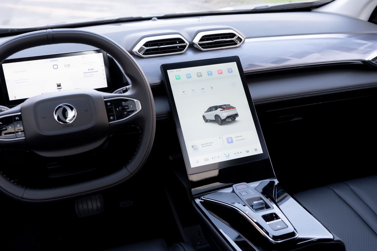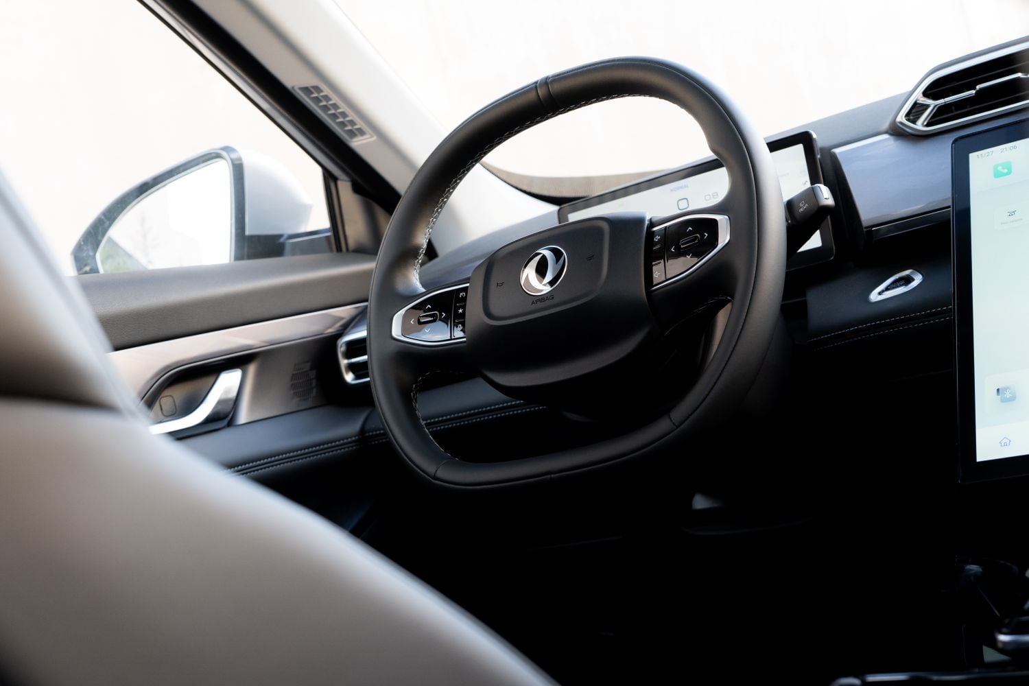 Interiér Dongfeng Mage prekvapí kvalitou spracovania. Vrch palubnej dosky je mäkčený, stredná časť potiahnutá koženkou a aj výplne dverí na kontaktných miestach pôsobia hodnotne. V aute za 24-tisíc eur je to veľmi príjemné zistenie. Pred vodičom sa nachádza digitálny prístrojový štít, ktorý síce neponúka široké možnosti konfigurácie, no je prehľadný a automaticky mení jas podľa svetelných podmienok. To nie je úplným štandardom ani pri oveľa drahších autách. Dominantou interiéru je vertikálne orientovaný centrálny displej. Nie je natočený na vodiča a všetko, vrátane klimatizácie, sa ovláda dotykovo, čo nemusí vyhovovať každému. Na druhej strane infotainment reaguje rýchlo, nezasekáva sa a jeho jednoduchosť zodpovedá filozofii auta. Veľkým plusom je tiež 360-stupňová parkovacia kamera. Obraz je zložený zo štyroch kamier a grafika je na túto cenovú kategóriu nadštandardná. Aj v zlých svetelných či poveternostných podmienkach tu na kamerách uvidíte dianie okolo auta podstatne zreteľnejšie ako napríklad v modeloch značky Dacia.