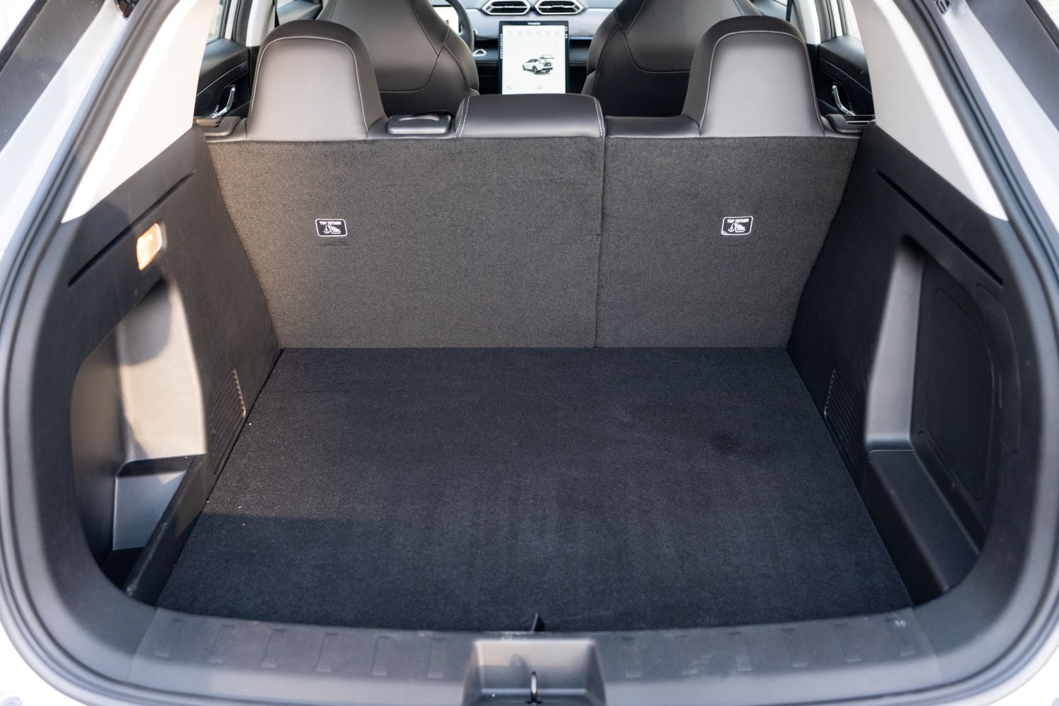 Batožinový priestor má objem 480 litrov. Elektrické otváranie je štandardom, no spracovanie kufra prezrádza šetrenie. Okrem toho, že za plató je potrebné si priplatiť, nájdete tu tvrdé plasty aj chýbajúce tapacíre. Vzhľadom na dizajn zadnej časti a skutočnosti, že pod podlahou kufra sa štandardne nachádza dojazdové rezervné koleso, neprekvapí vyššia nakladacia hrana. Zadné sedadlá sa sklápajú v pomere 60:40 do roviny, no bez priečneho otvoru na dlhé predmety.