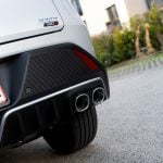 Testovaný kus obúval 19-palcové disky kolies s pneumatikami s rozmermi 235/55 R19 od absolútne neznámej značky. Vzhľadom na relatívne vysoký výkon a vlastnosti, ktoré tieto pneu vykazovali na ceste, odporúčame siahnuť po pneumatikách od tradičnejších značiek. Zadná časť pokračuje v sebavedomom dizajne, o ktorý sa stará výrazný LED svetelný podpis a strešné krídlo. Jediným rušivým prvkom sú štyri falošné koncovky výfuku, ktoré sa k charakteru auta príliš nehodia a pôsobia skôr samoúčelne.