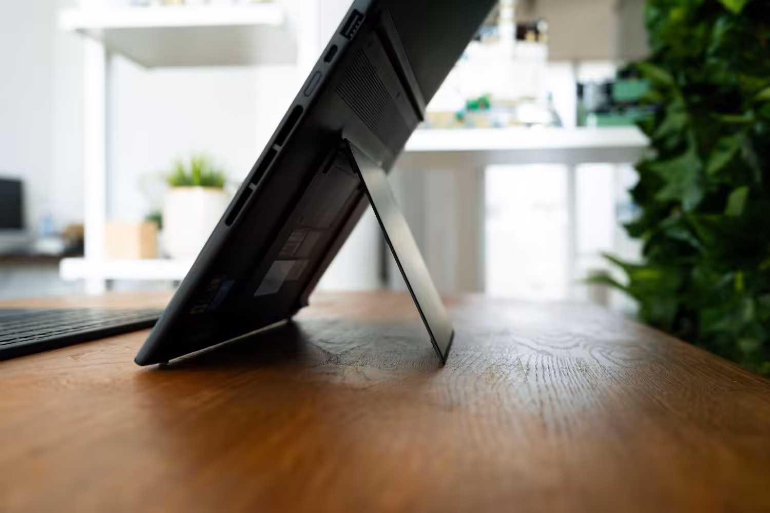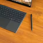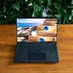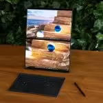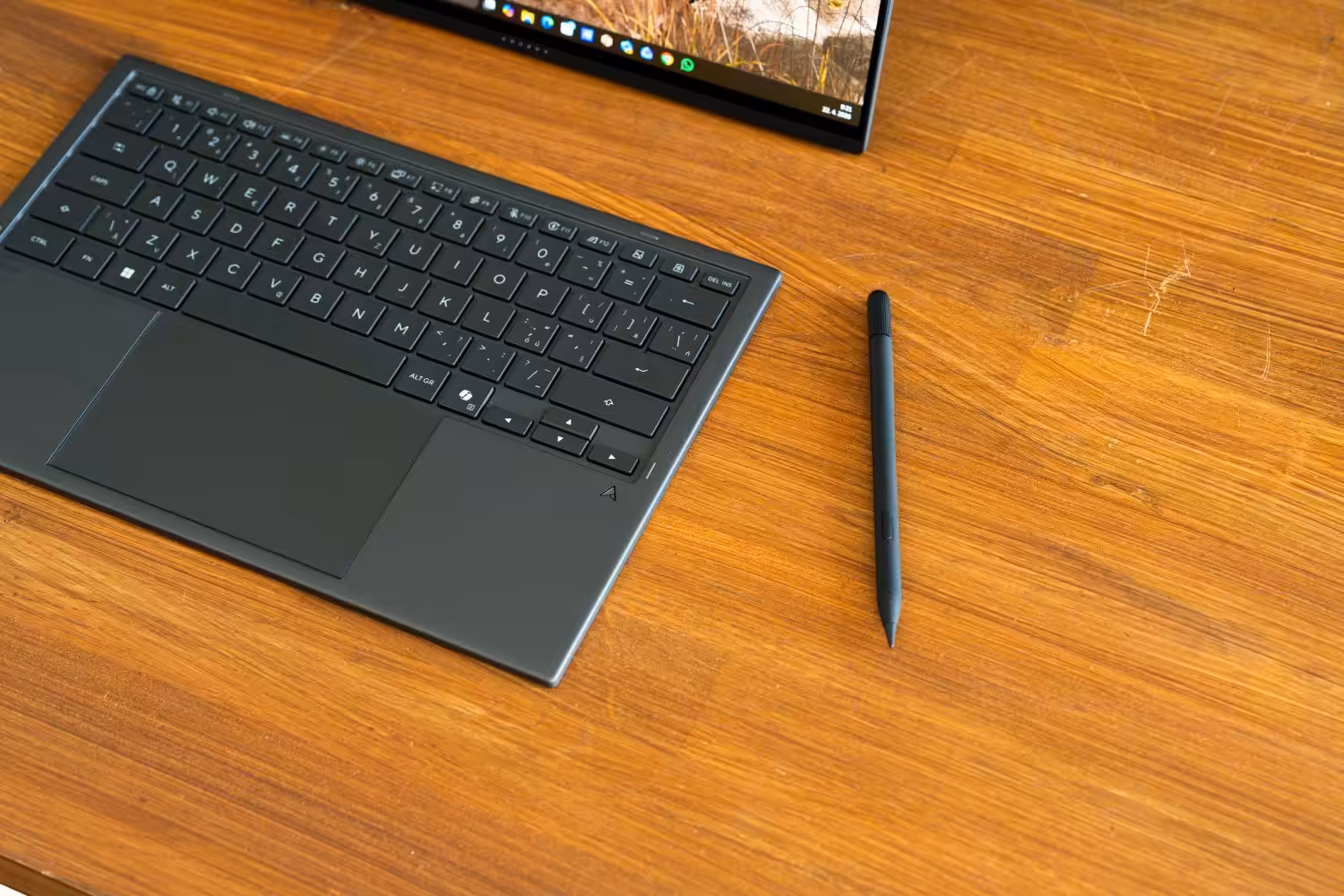 O grafický výkon sa stará integrovaná grafika Intel Arc Graphics, ktorá počítač predurčuje skôr na grafické aplikácie, úpravu videa a rendering, než na hranie najnovších hier. Menšou nevýhodou tabletovej konštrukcie je vyvedenie výduchov chladenia na boky. Pri kancelárskej práci za stolom to nevadí, ale ak sa počítač rozhodnete používať na kolenách, na dlane vám bude fúkať teplý vzduch. Prekvapila nás však výdrž batérie. Je jasné, že dvojica displejov bude míňať viac energie než keď budete používať len jeden z nich, ale notebook pri kancelárskej práci či pozeraní filmov aj tak dokáže prekonať hranicu 15 hodín na jedno nabitie.