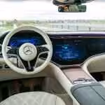 Interiér je takmer na vlas identický s bežným EQS. Trojica obrazoviek ukrytých pod jediným skleneným panelom ohromuje aj dnes. Systém je ľahko ovládateľný a jeho grafika nemá konkurenciu. Technologickou výkladnou skriňou je aj HUD s rozšírenou realitou, zatiaľ stále najpokrokovejší v sériovo vyrábanom aute. Digitálne svetlomety sú čerešničkou na torte, ktorú rozhodne musíte mať. To, čo dokážu, je ohromujúce a treba to zažiť na vlastné oči.